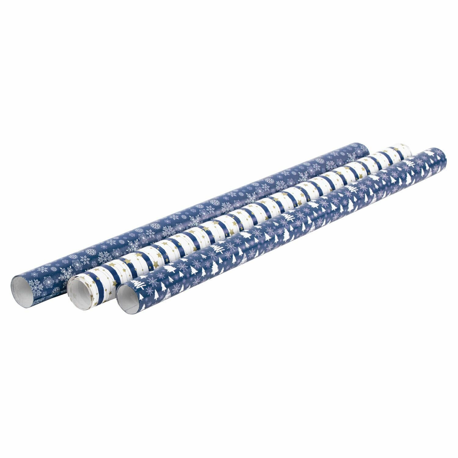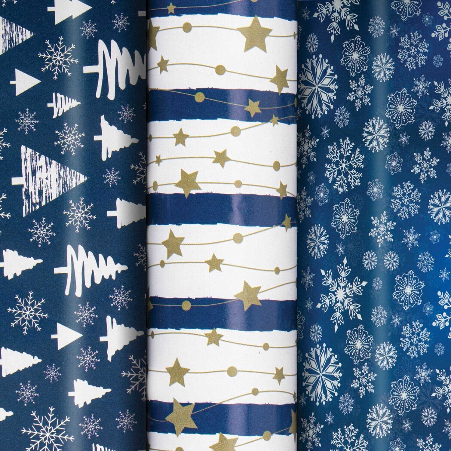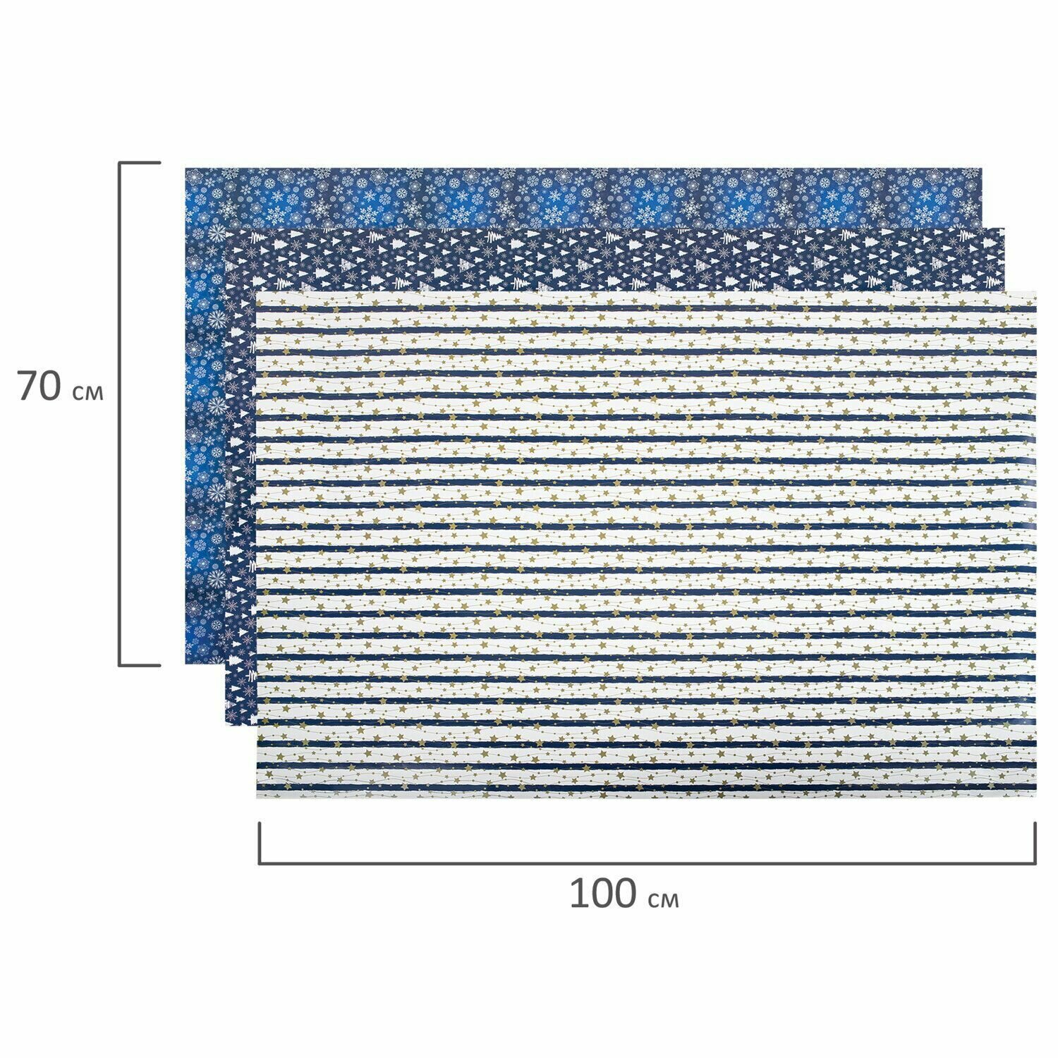 Бумага упаковочная новогодняя набор 3 шт, "Blue Collection", 70х100 см, 3 дизайна, золотая сказка, 592058