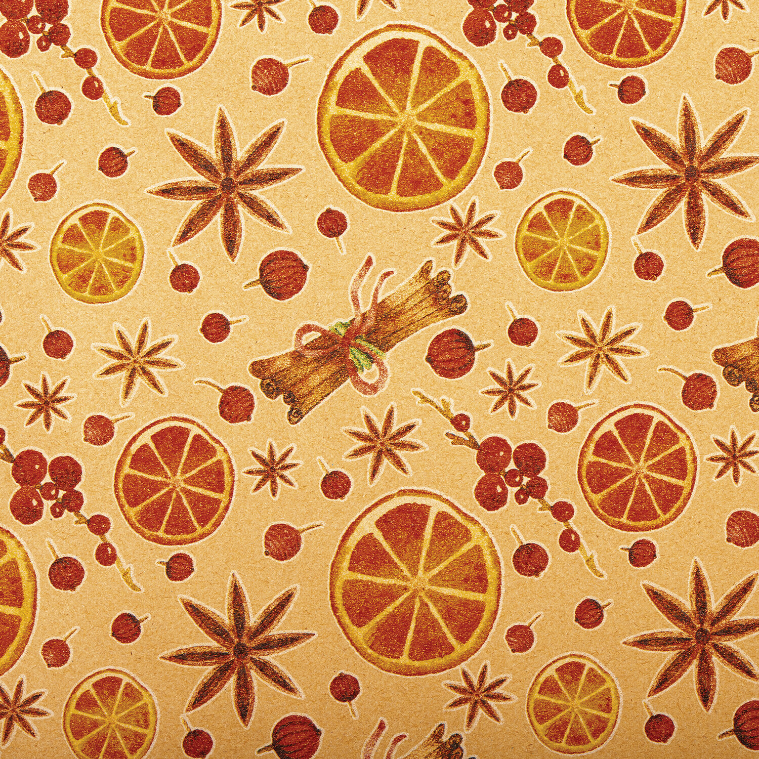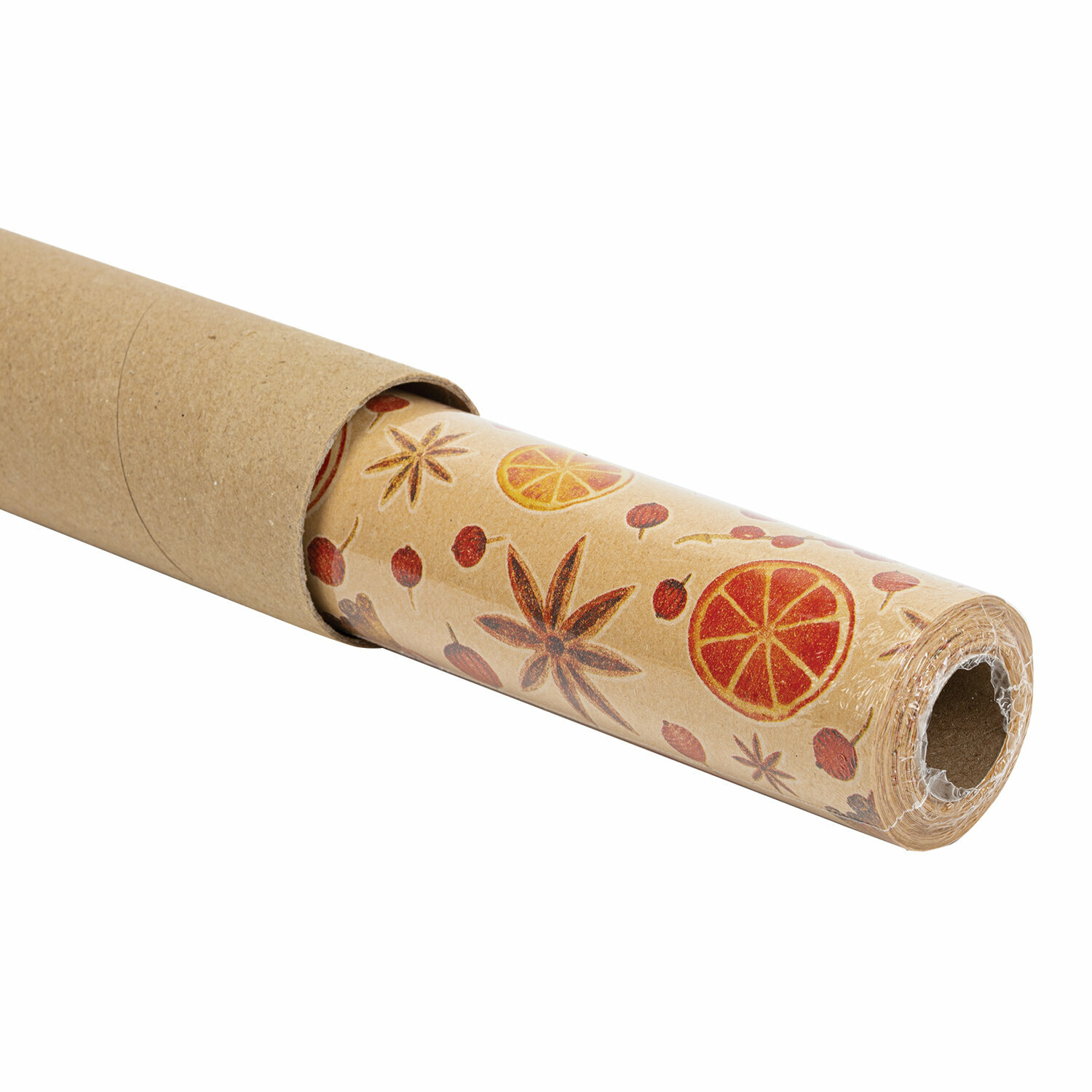 Бумага упаковочная крафт BIG SIZE новогодняя "Апельсин & Корица", 0,7х10 м, золотая сказка, 592192