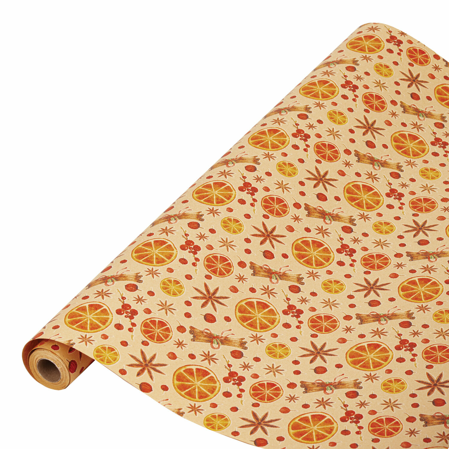 Купить Бумага упаковочная крафт BIG SIZE новогодняя "Апельсин&Корица", 0,7х10 м, золотая сказка, 592192