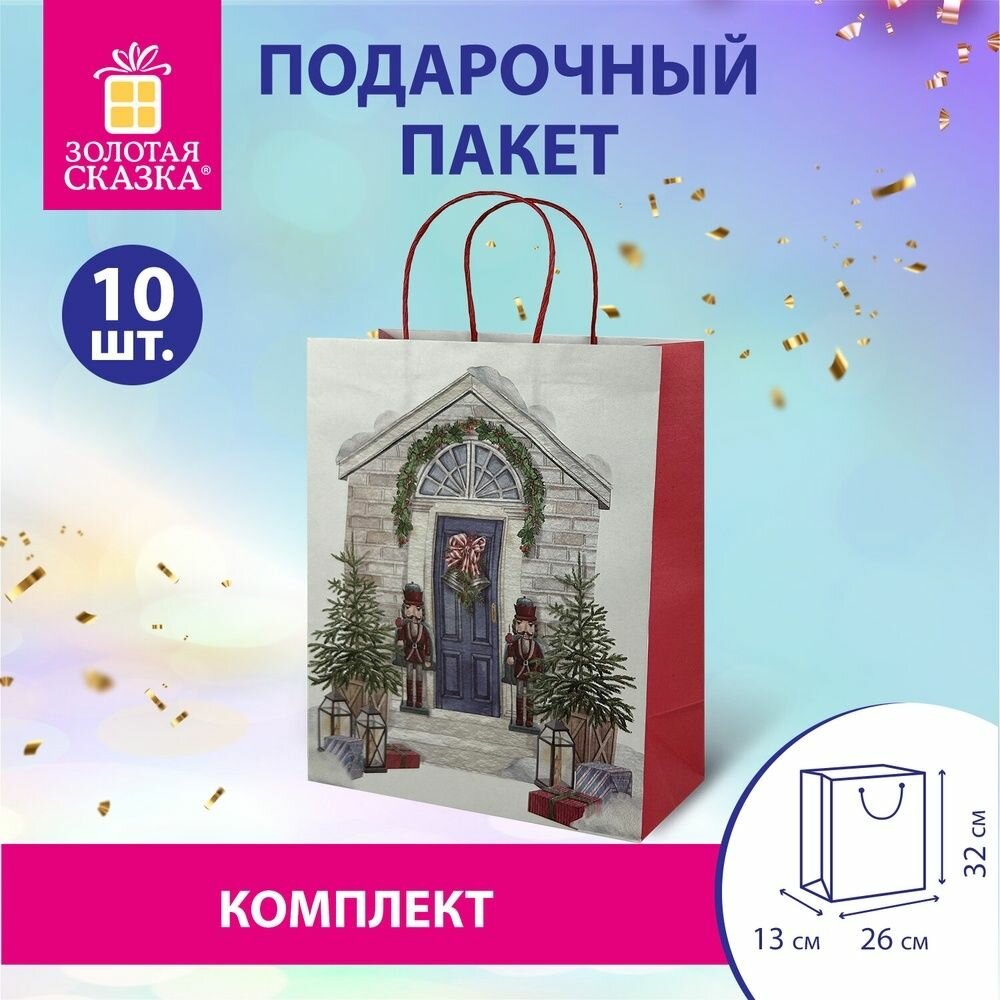 Купить Пакеты подарочные Золотая сказка 10 штук, новогодние, 26x32x13 см "Новогодняя Сказка" (592131)
