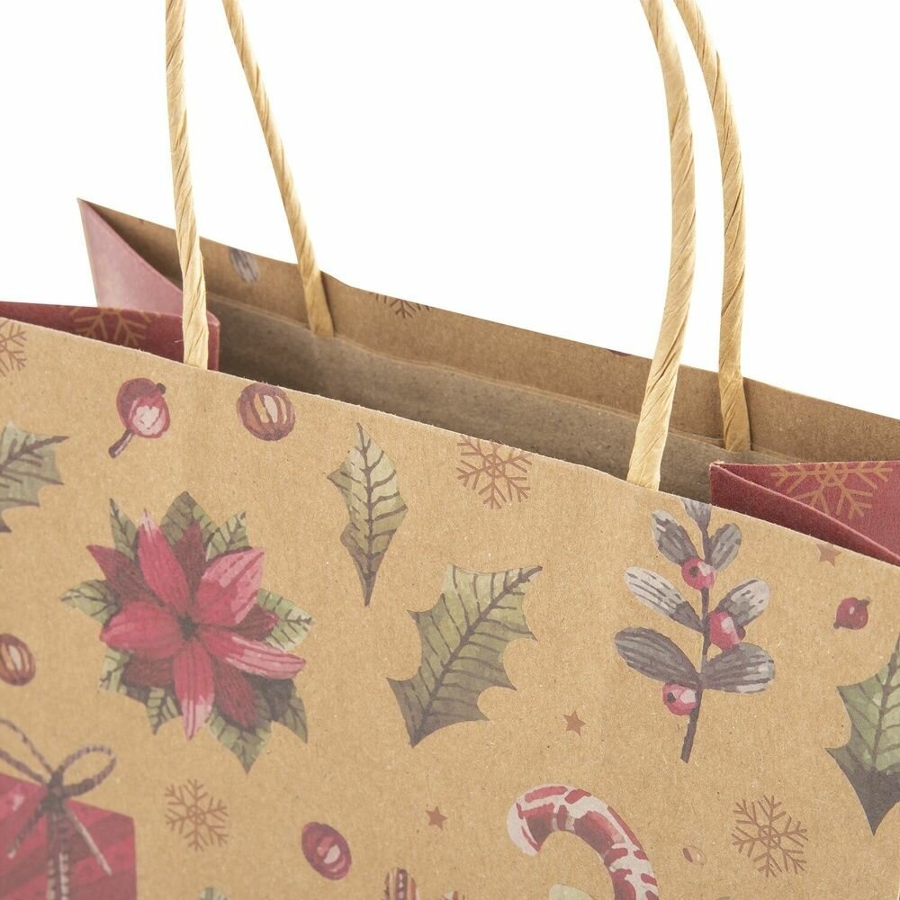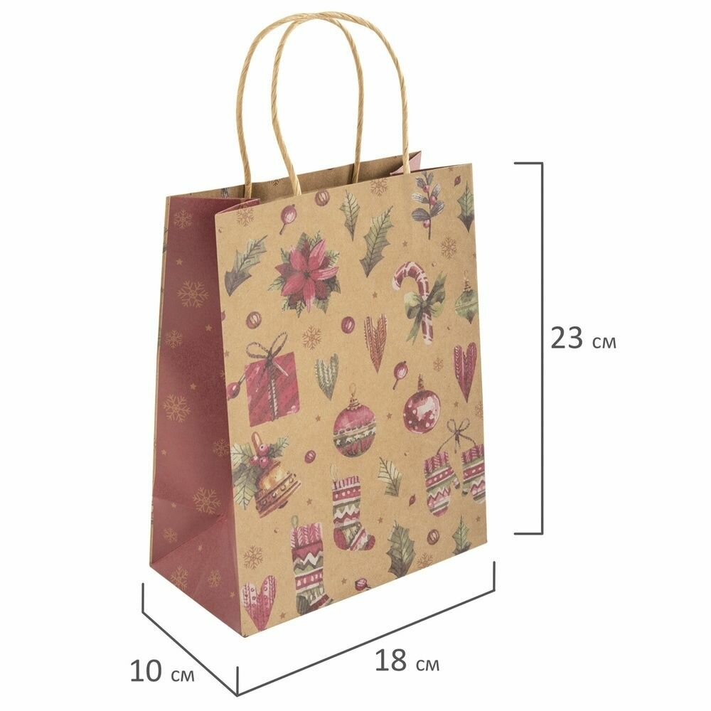 Пакет подарочный комплект 10 штук, новогодний, 26x13x32 см, "Christmas Kraft", золотая сказка, 591961