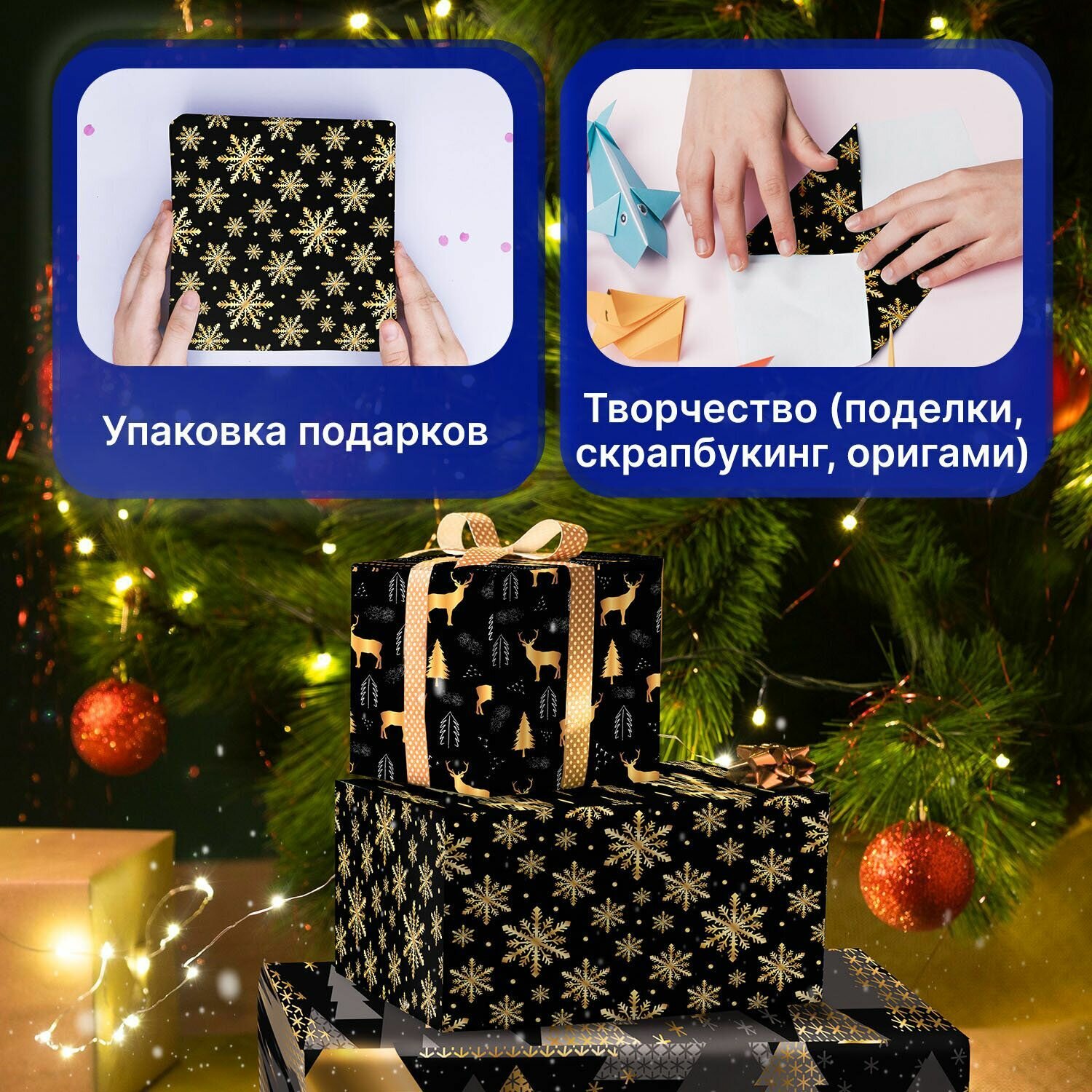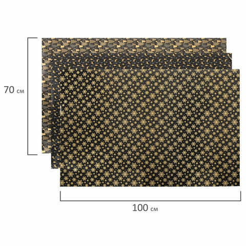 Бумага упаковочная новогодняя набор 3 шт. "Black&Gold", С эффектами, 70х100 см, золотая сказка, 592190
