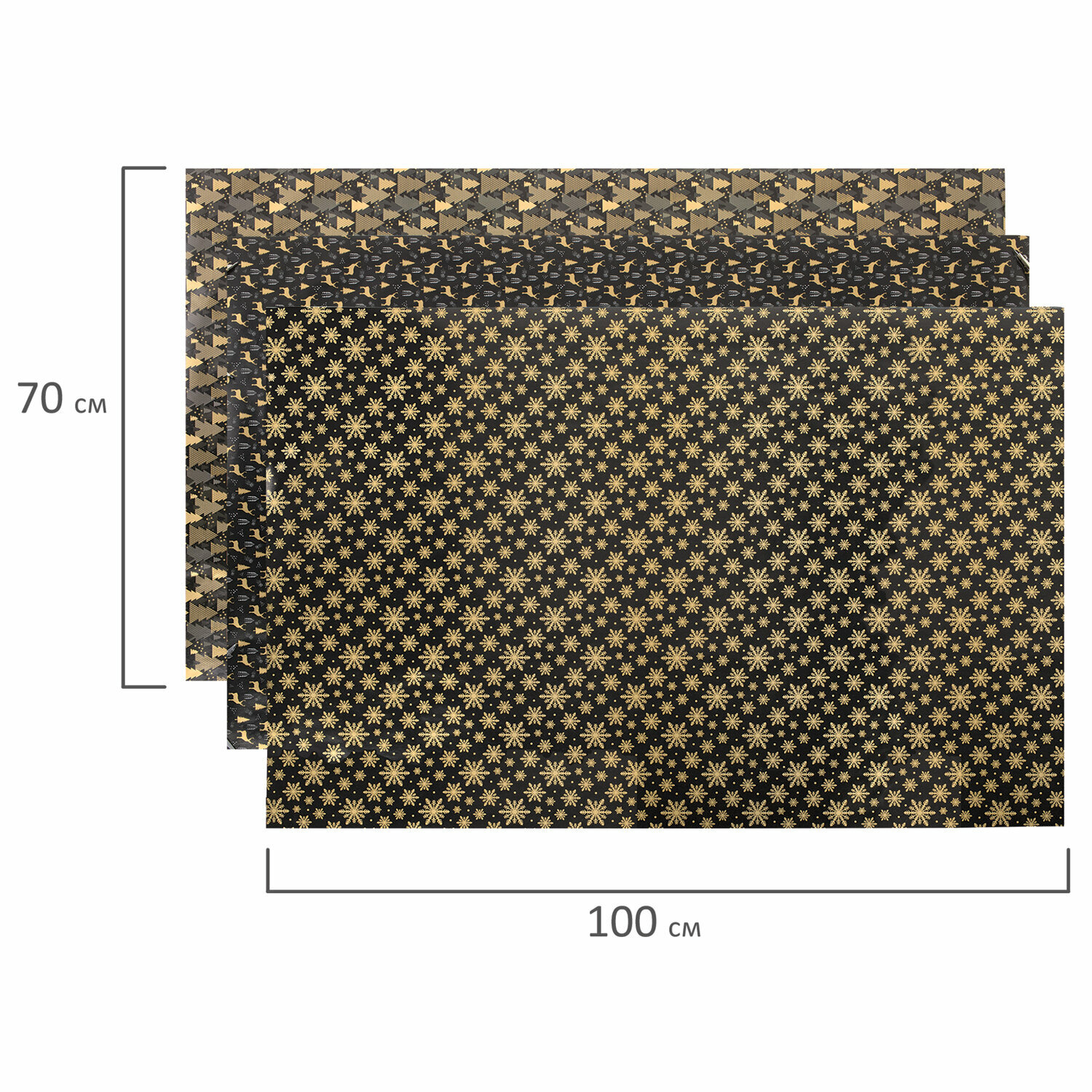 Упаковочная бумага для подарков крафтовая с эффектами в рулонах, набор 3 штуки, 70х100 см, Black Edition, золотая сказка, 591942