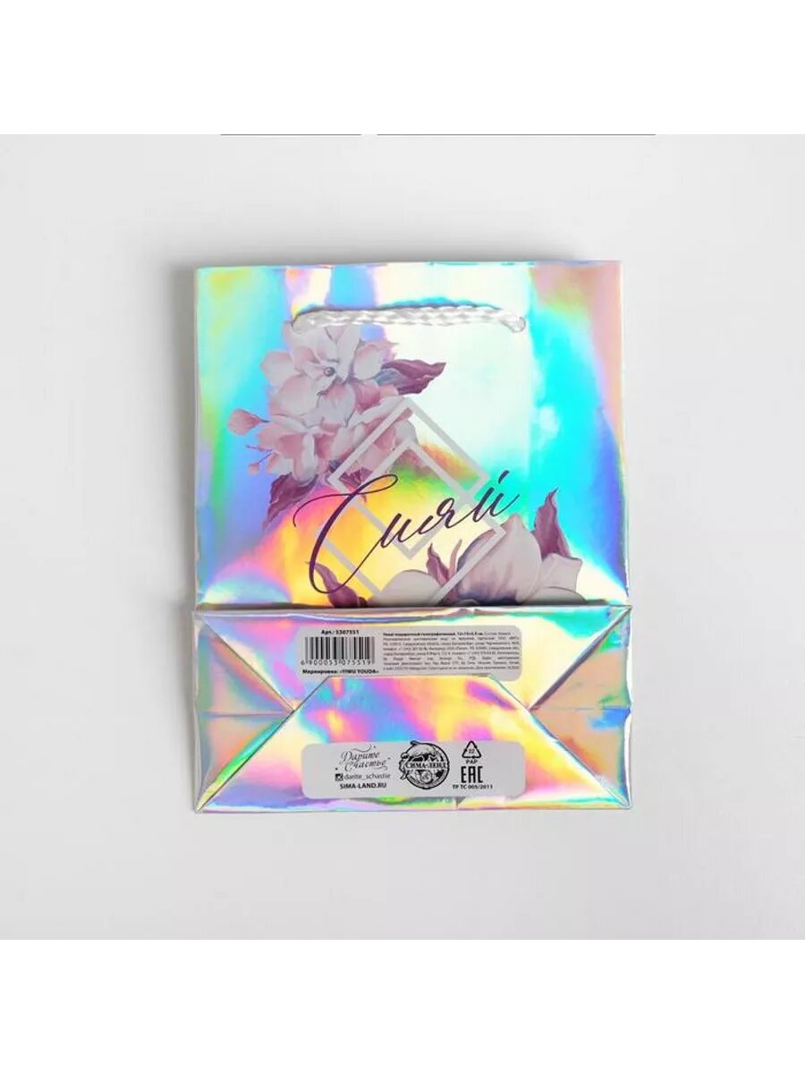 Пакет подарочный голографический « Сияй», 12 × 15 × 5,5 см интересное: