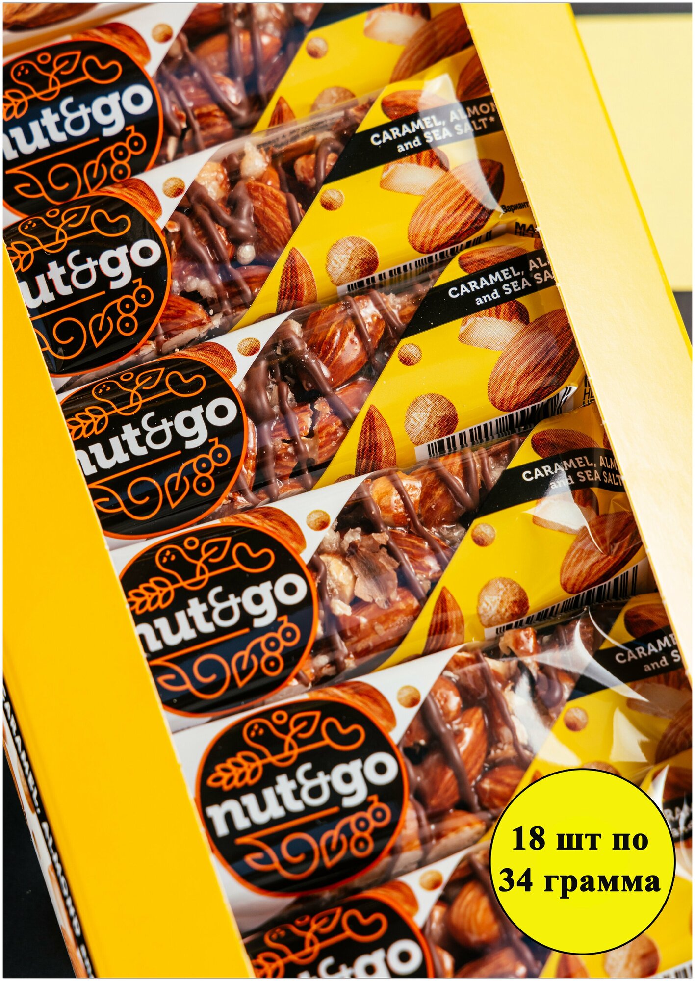 Батончики Nut&Go с жаренным миндалём, 18 шт/34 г