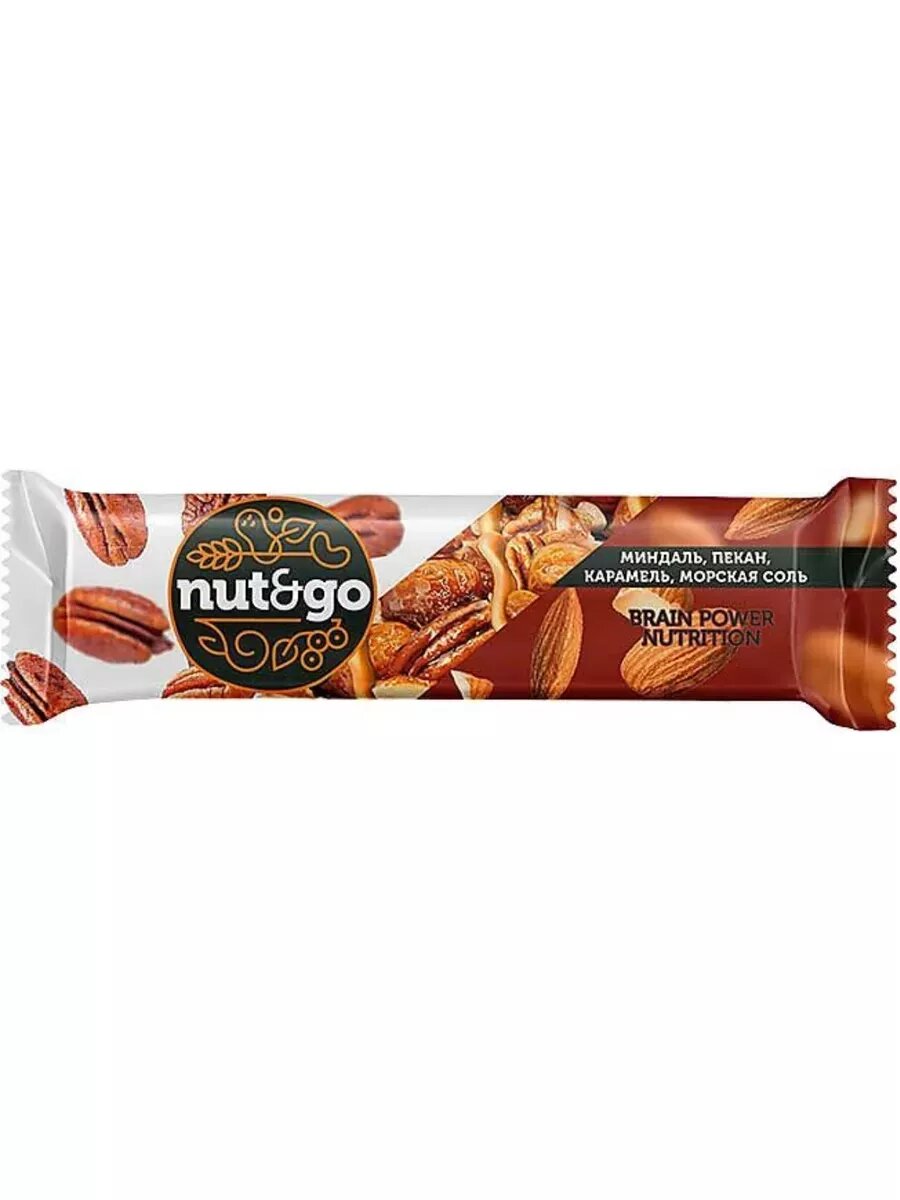 Купить Nut&Go, батончик с миндалём, пеканом, карамелью, морской солью, 36 г (упаковка 18 шт.)