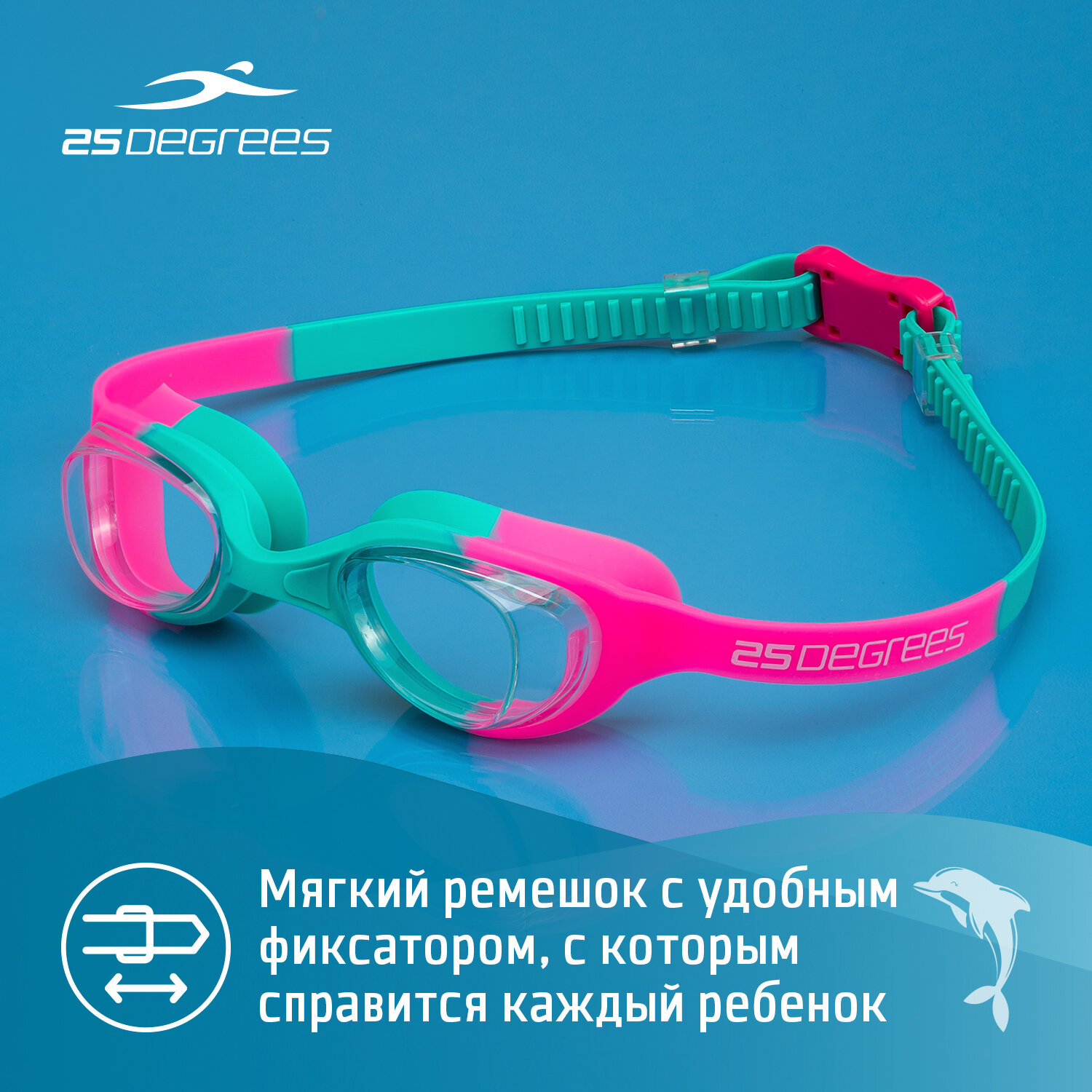 СохранитьОчки для плавания детские 25DEGREES Dory Pink/Turquoise футляр в комплекте, цвет розовый/бирюзовый интересное: