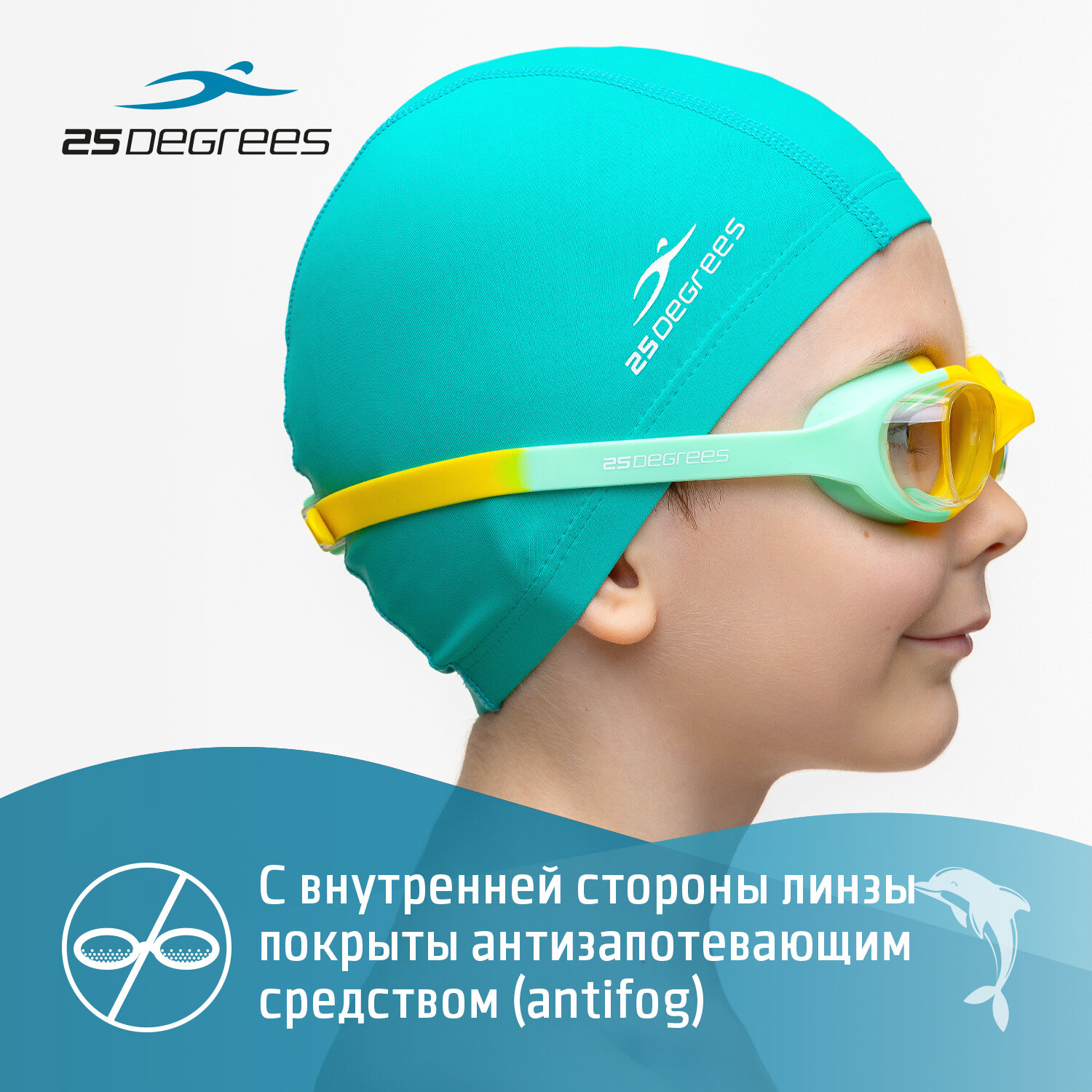 СохранитьОчки для плавания детские 25DEGREES Dory Green/Yellow футляр в комплекте, цвет зеленый/желтый интересное: