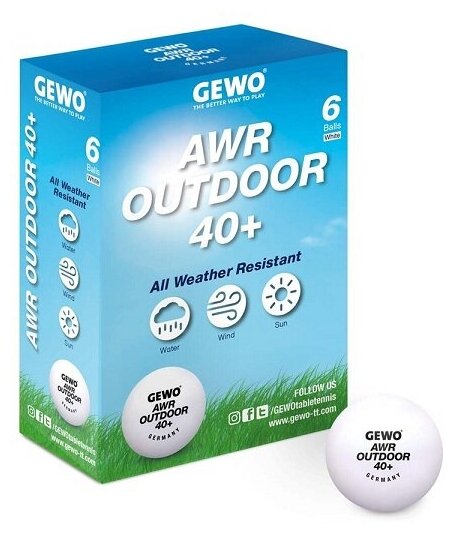 Мячи для настольного тенниса Gewo Outdoor AWR 40+ Plastic x6 White