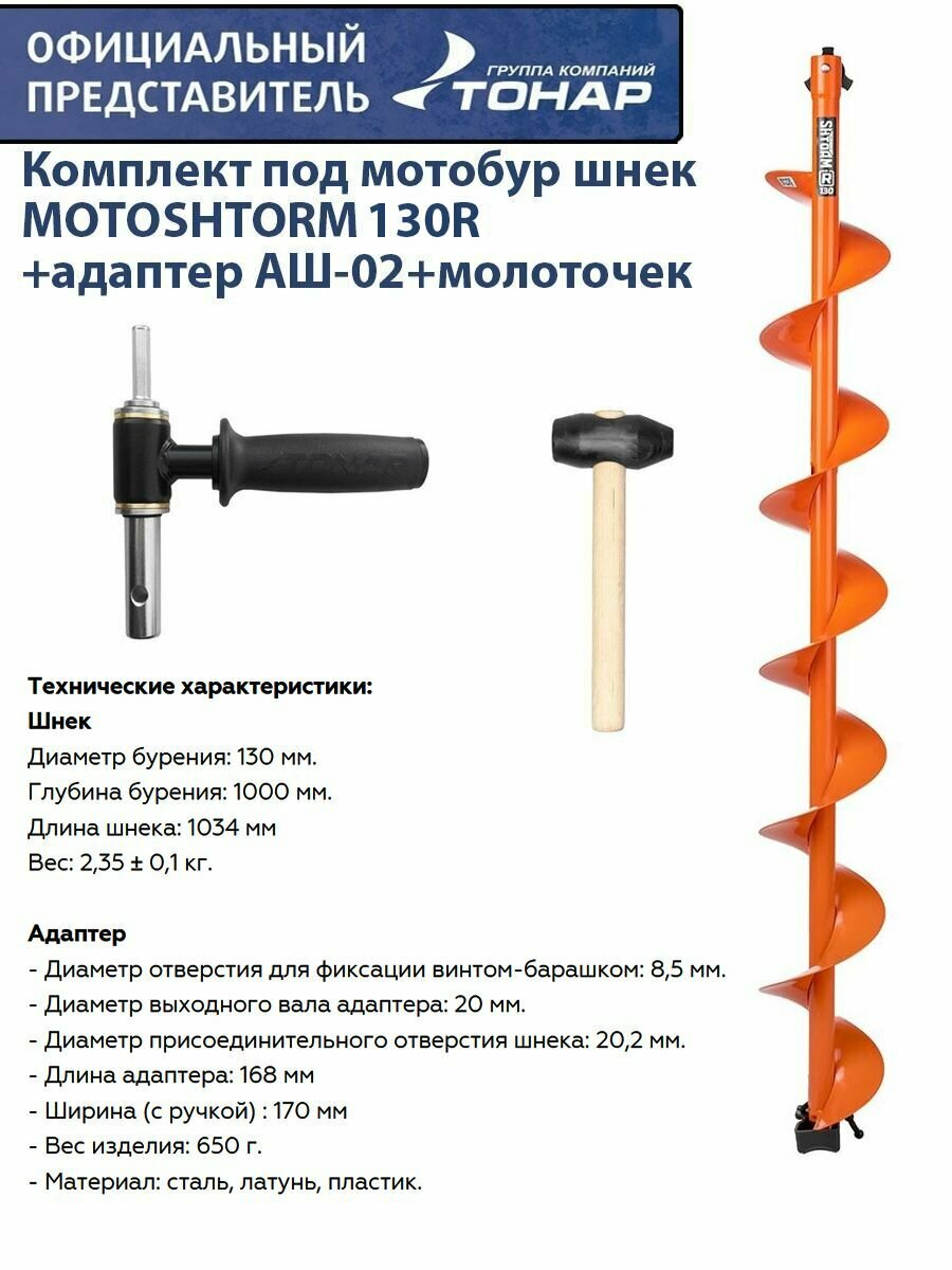 Купить Комплект под мотобур шнек 130R MOTOSHTORM +адаптер АШ-02+молоточек Тонар