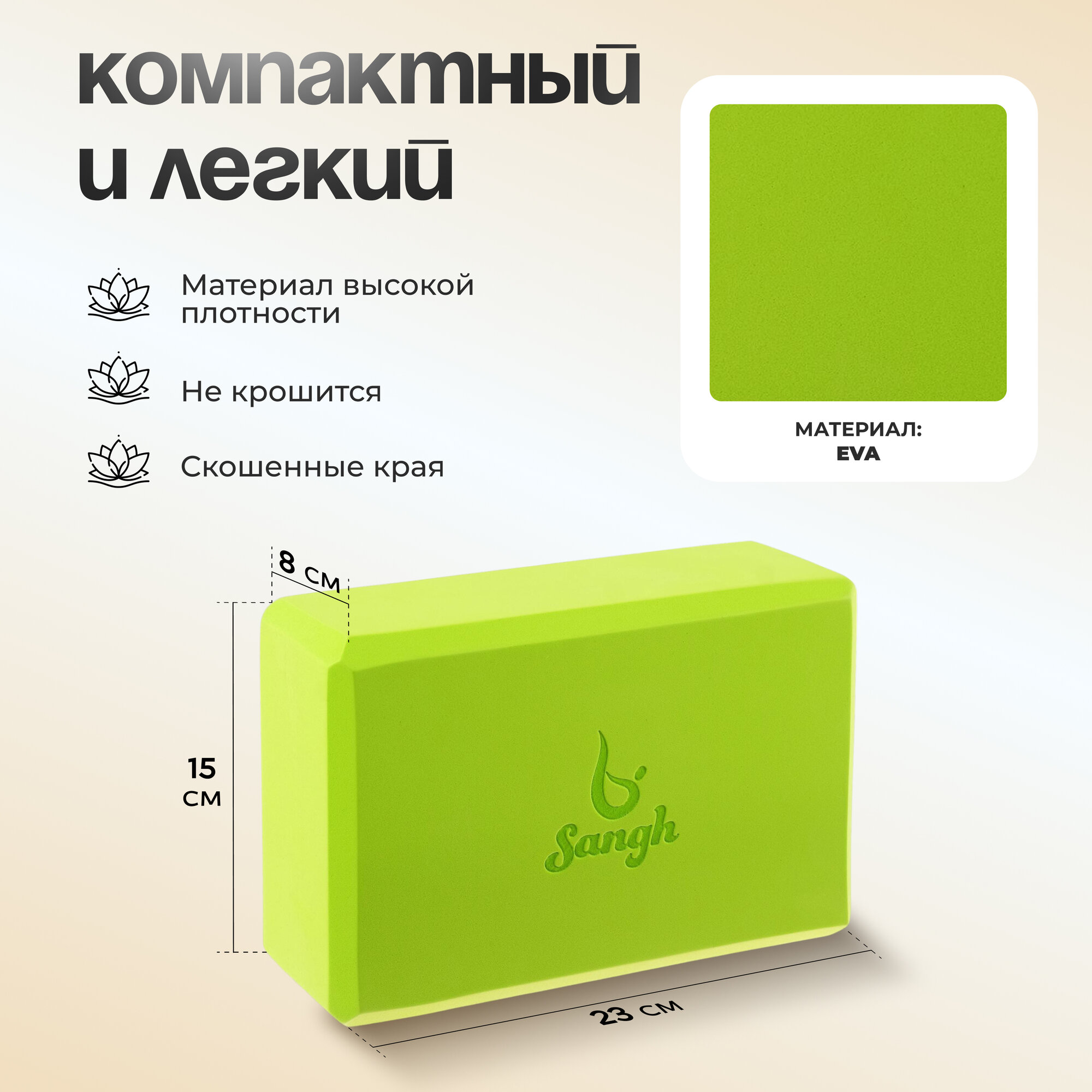 Блок для йоги Sangh, EVA, зеленый, нескользящая поверхность, 23x8x23 см