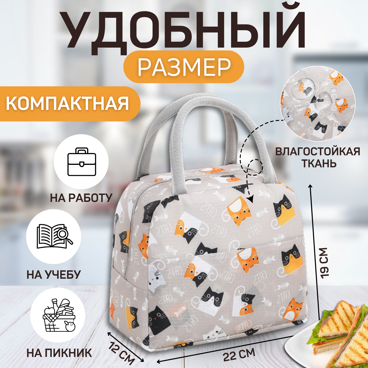 | Дополнительная информация | Термосумка, изотермическая облегченная сумка для еды, пикника, женская, размером 19х22х12 см |