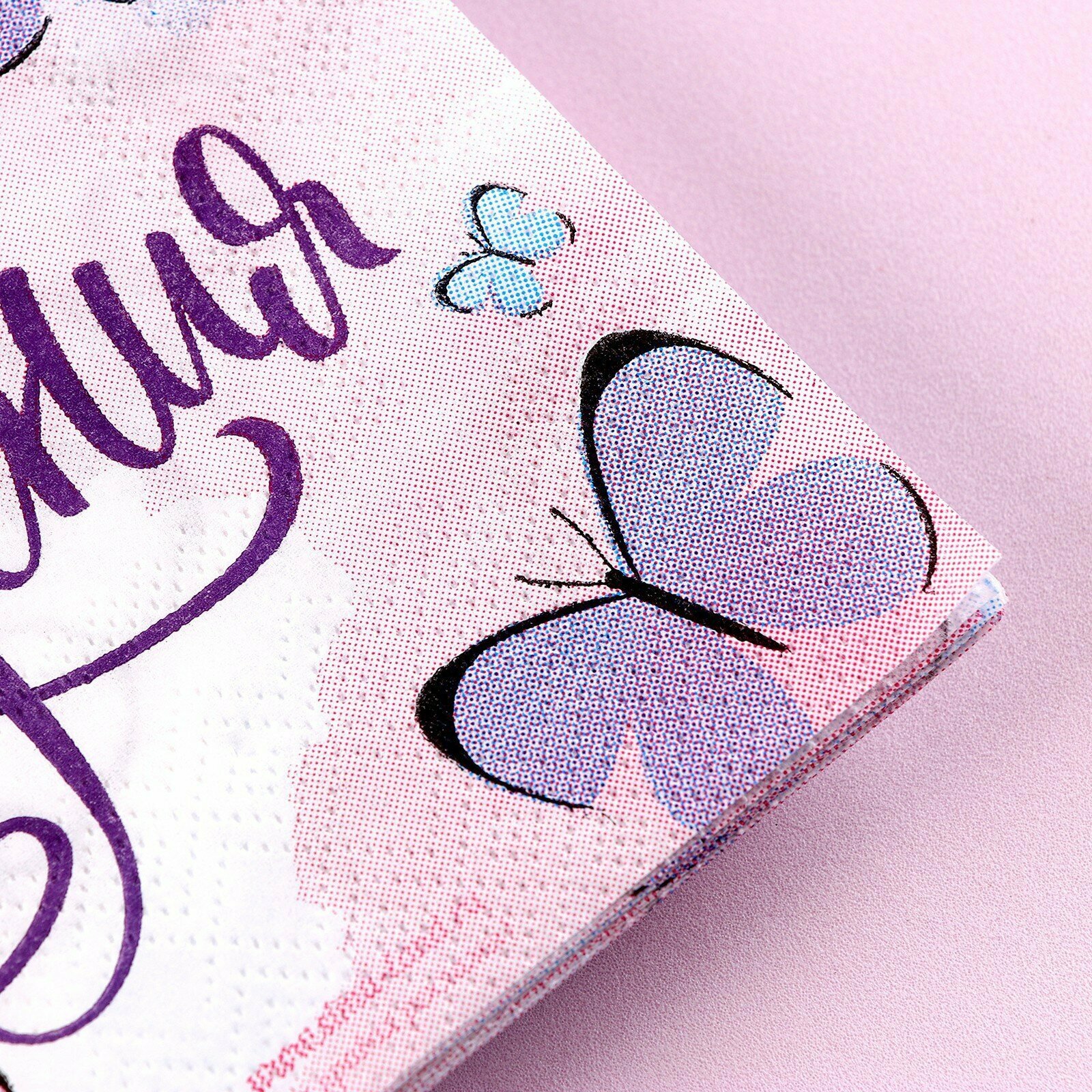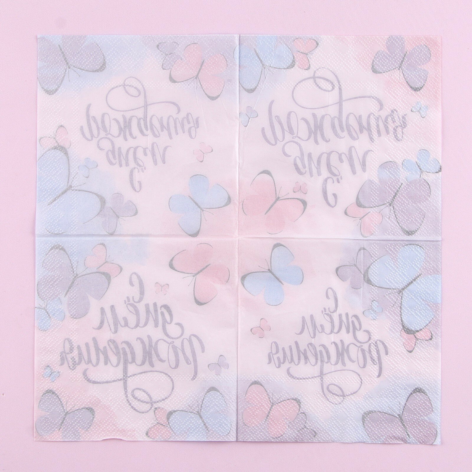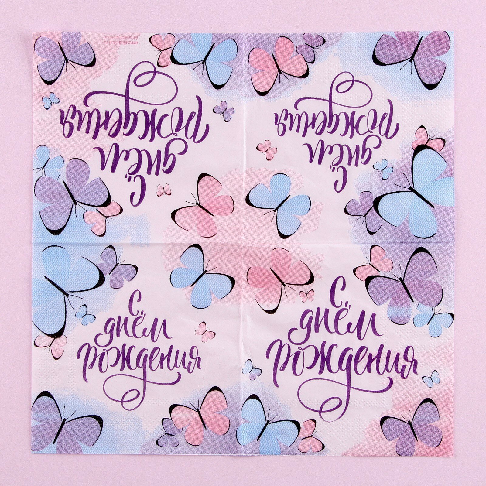 Купить Салфетки бумажные "С днем рождения", бабочки, 25х25 см, набор 20 шт. 1 уп.