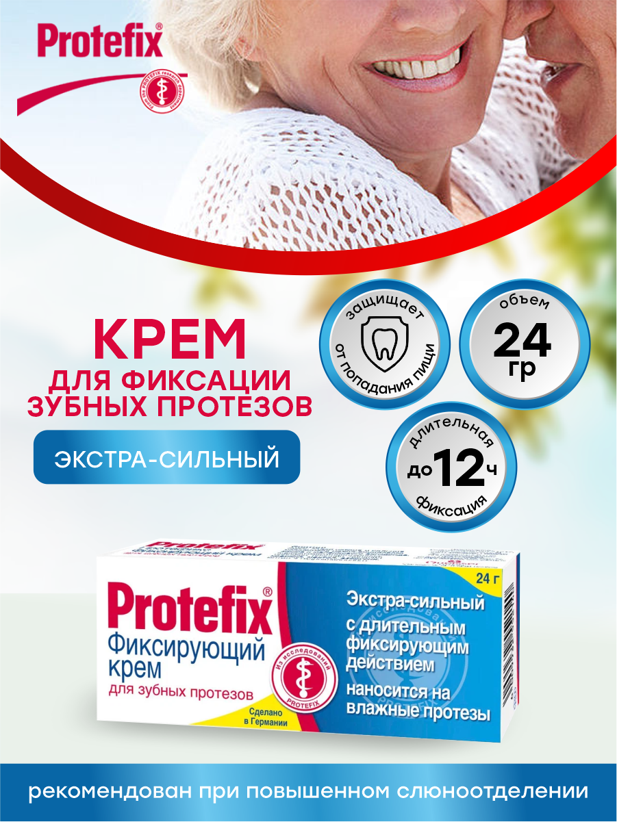 Протефикс Экстра Сильный, крем для фиксации зубных протезов, 24 г