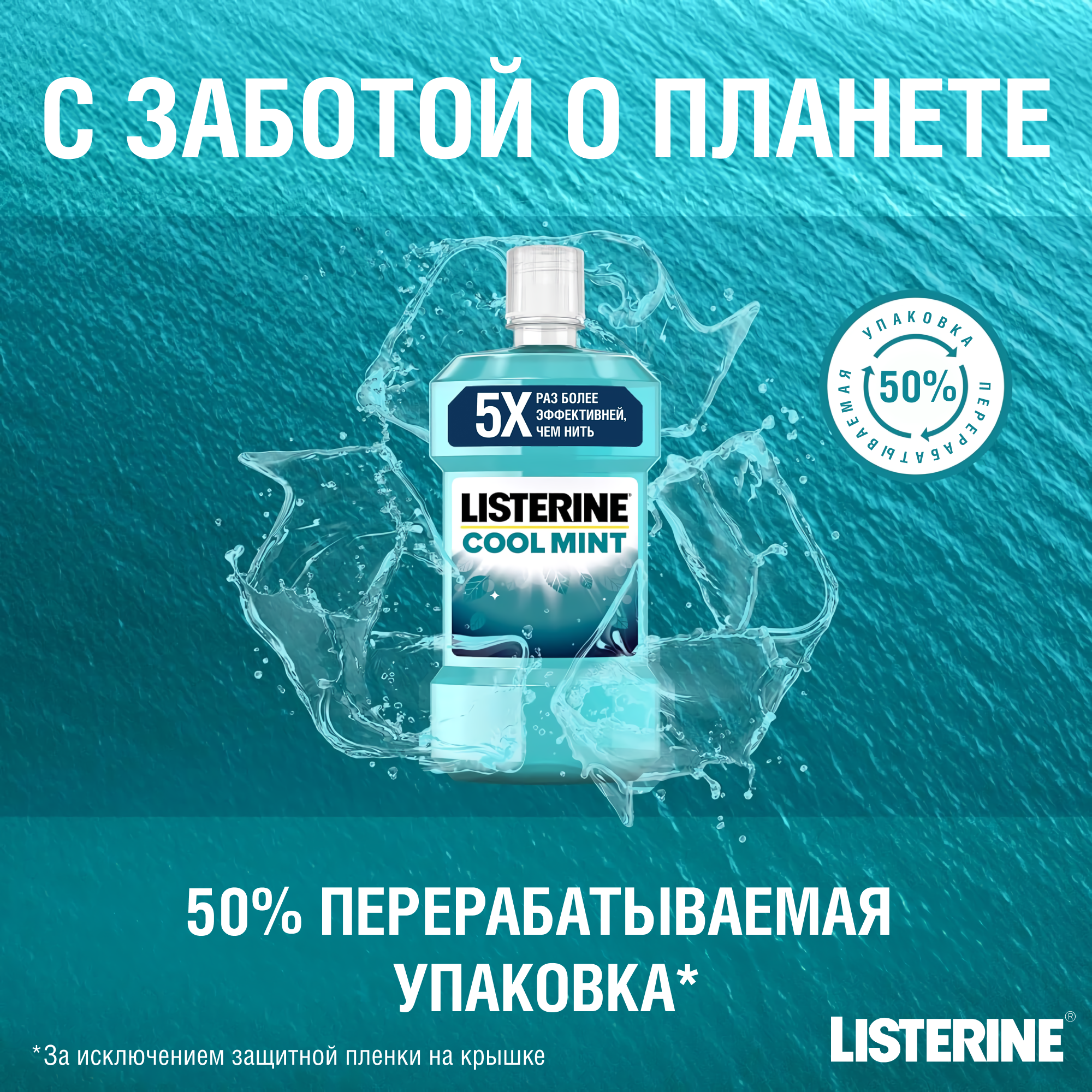 Ополаскиватель для полости рта Listerine Cool Mint для зубов и десен, зубной ополаскиватель антибактериальный Листерин для рта, 1 л (1000 мл)