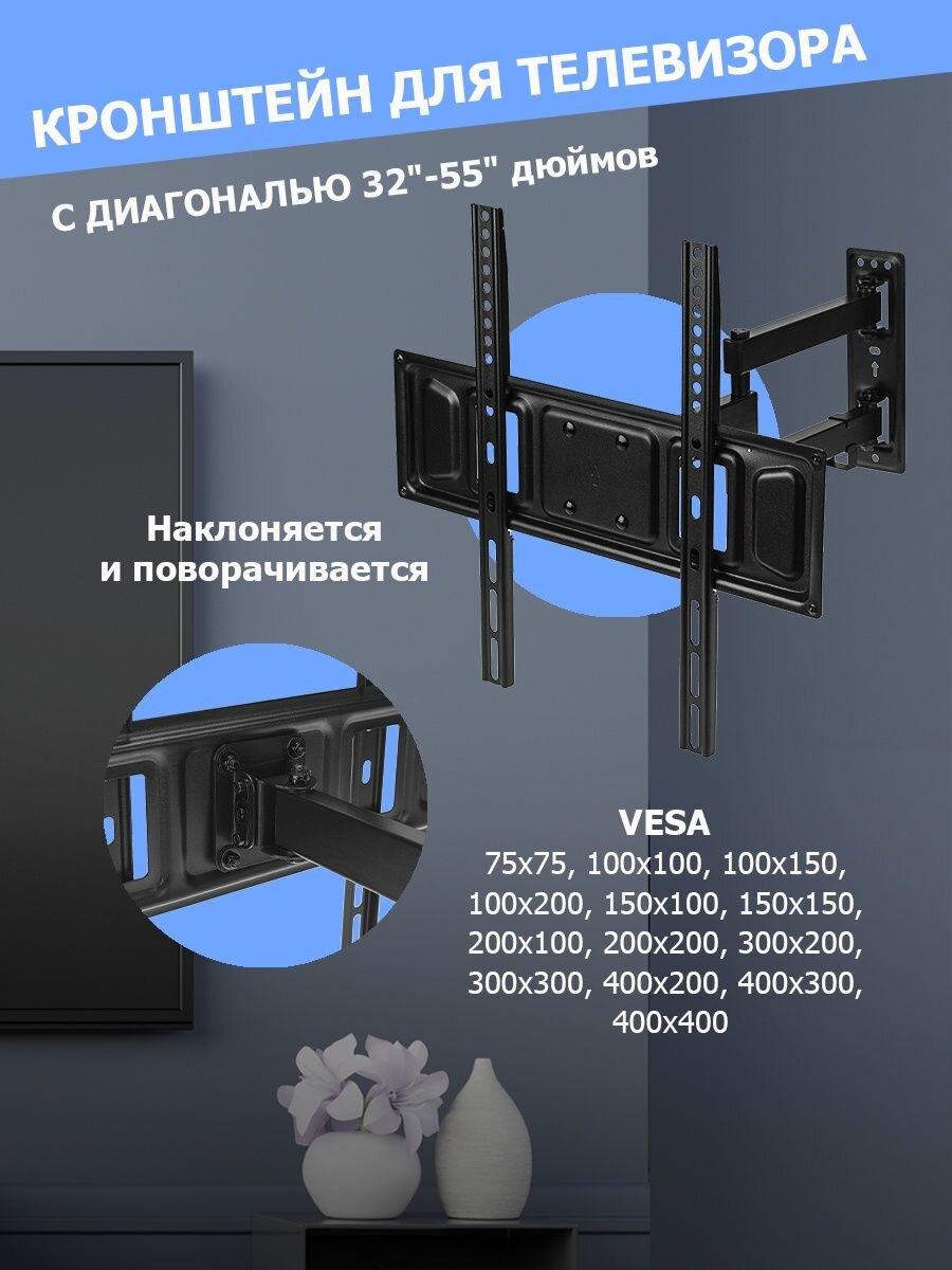 Купить Кронштейн для телевизора 32"-55" REXANT HOME наклонно-поворотный 2 колена