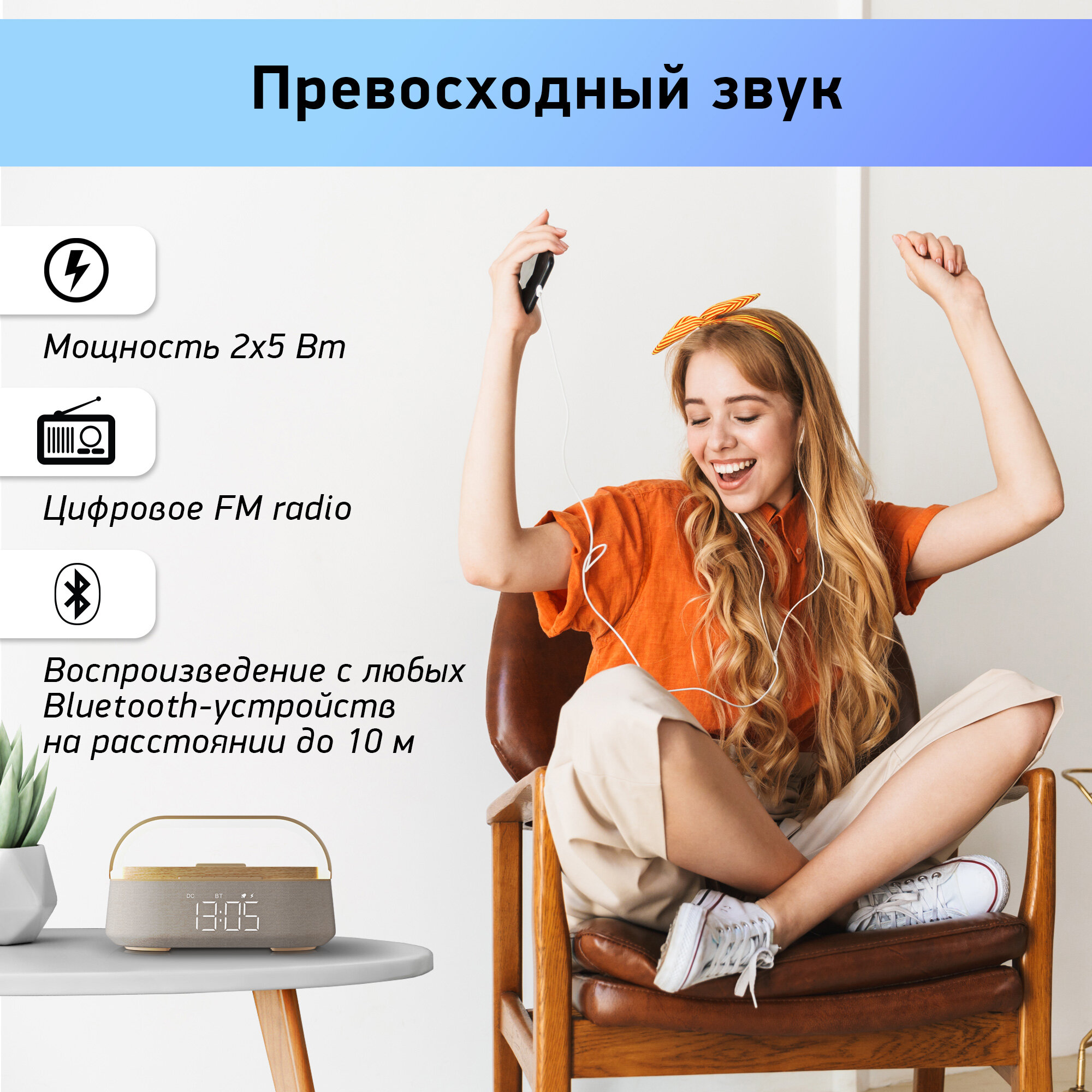| Особенности | FM-радио / будильник / встроенные часы / дисплей |