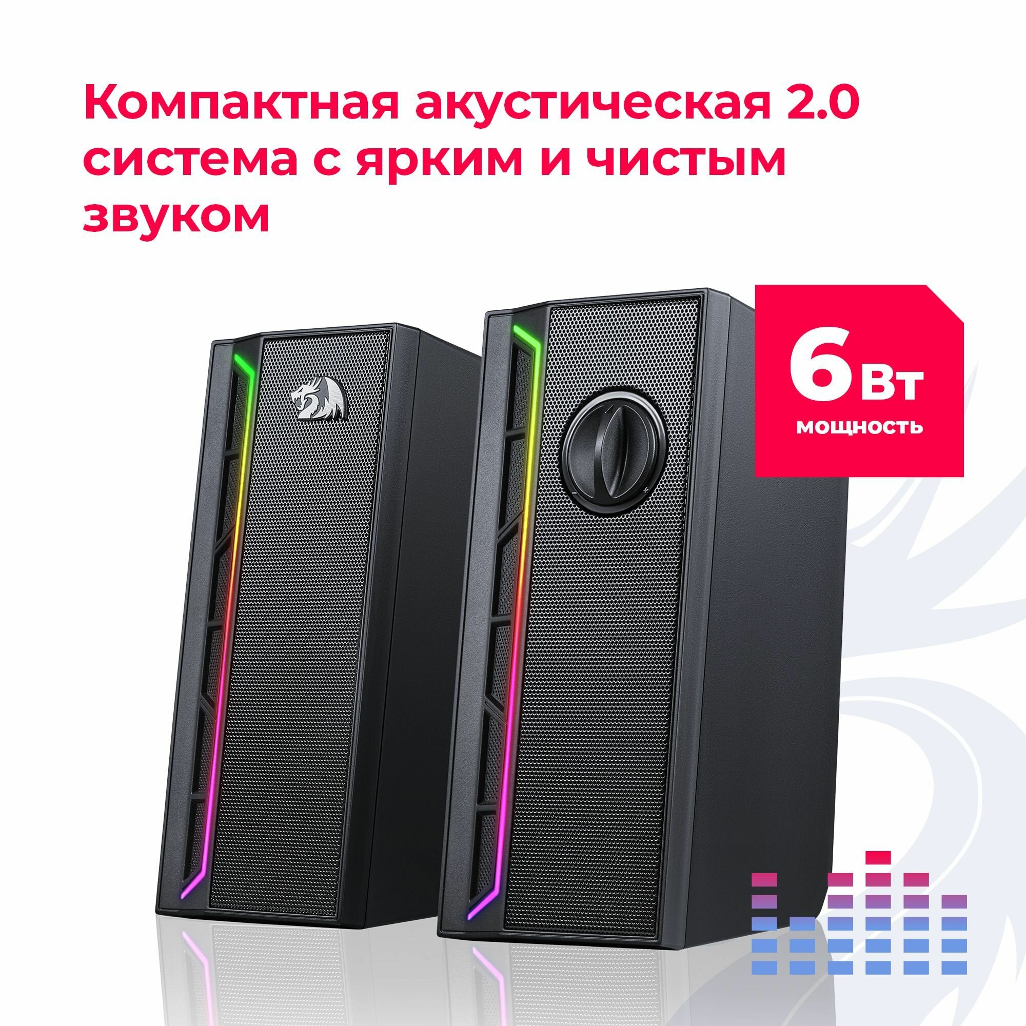 Redragon Акустическая 2.0 система Calliope черн,6Вт, RGB, USB+3.5мм