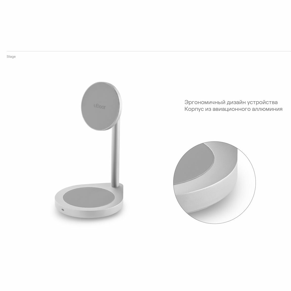 Беспроводное зарядное устройство uBear Stage, док-станция 2-в-1, серебристый (WL06SL21-AD) интересное: