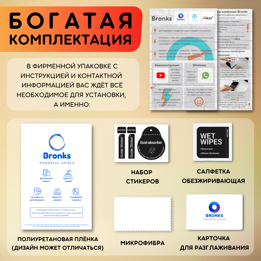 | Подробная комплектация | 1. Пленка 1 шт 2. Салфетка влажная 1 шт 3. Микрофибра 1 шт 4. Стикеры для удаления пыли 3 шт 5. Ракель(карточка для разглаживания) 1 шт 6. Инструкция 1 шт |