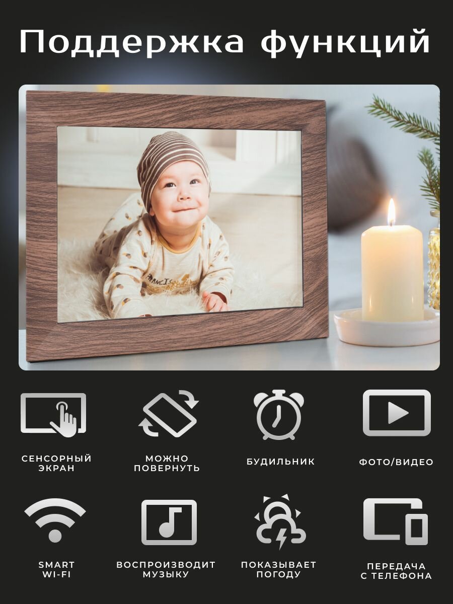 СохранитьУмная Цифровая фоторамка FRAMEO, экран 10.1 дюйм Коричневая. TOUCH SCREEN SMART WI-FI Photo Frame Сенсорный экран, фото, видео и звук. Работает по ВАЙ-ФАЙ. 1280x800 пикселей. интересное: