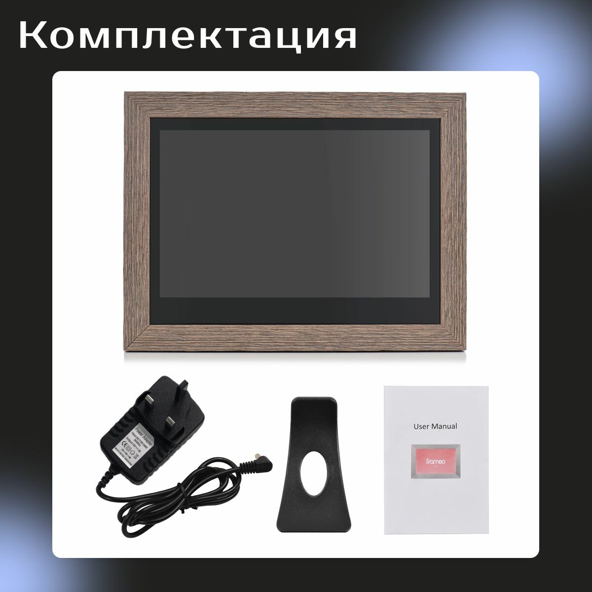 Умная Цифровая фоторамка FRAMEO, экран 10.1 дюйм. Цвет: Коричневое дерево TOUCH SCREEN SMART WI-FI Photo Frame Сенсорный экран, фото, видео и звук.1280x800 пикселей.