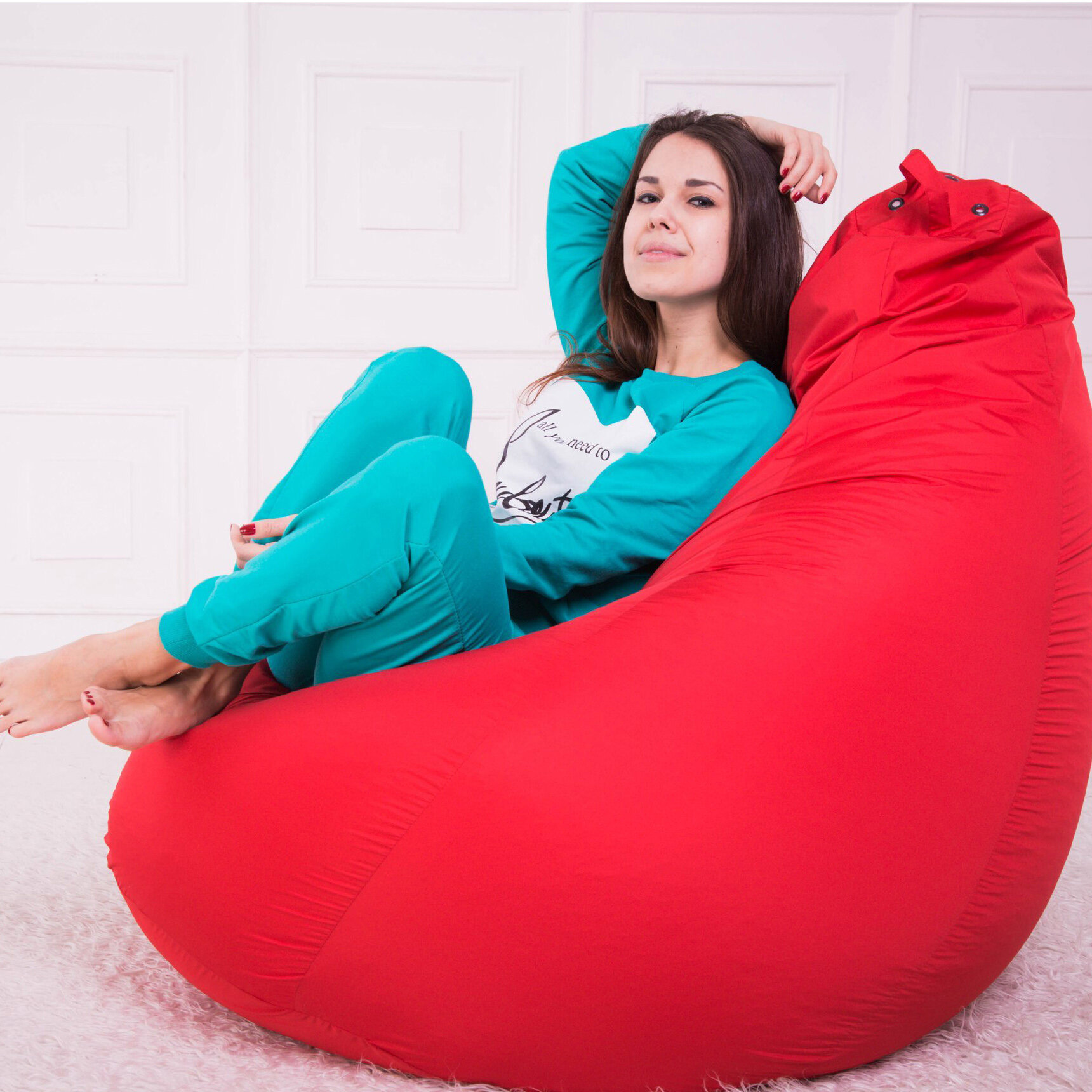Бескаркасное красное кресло-мешок для подростка ростом до 160см