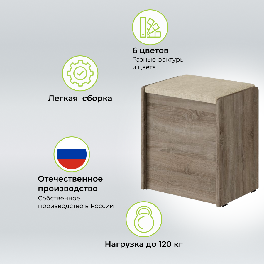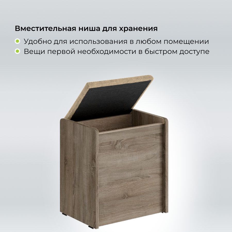 Пуф Чикаго Тип 1, Дуб сонома/Рогожка Бежевый, табурет для кухни, банкетка в прихожую, мебель для кухни, с ящиком для хранения