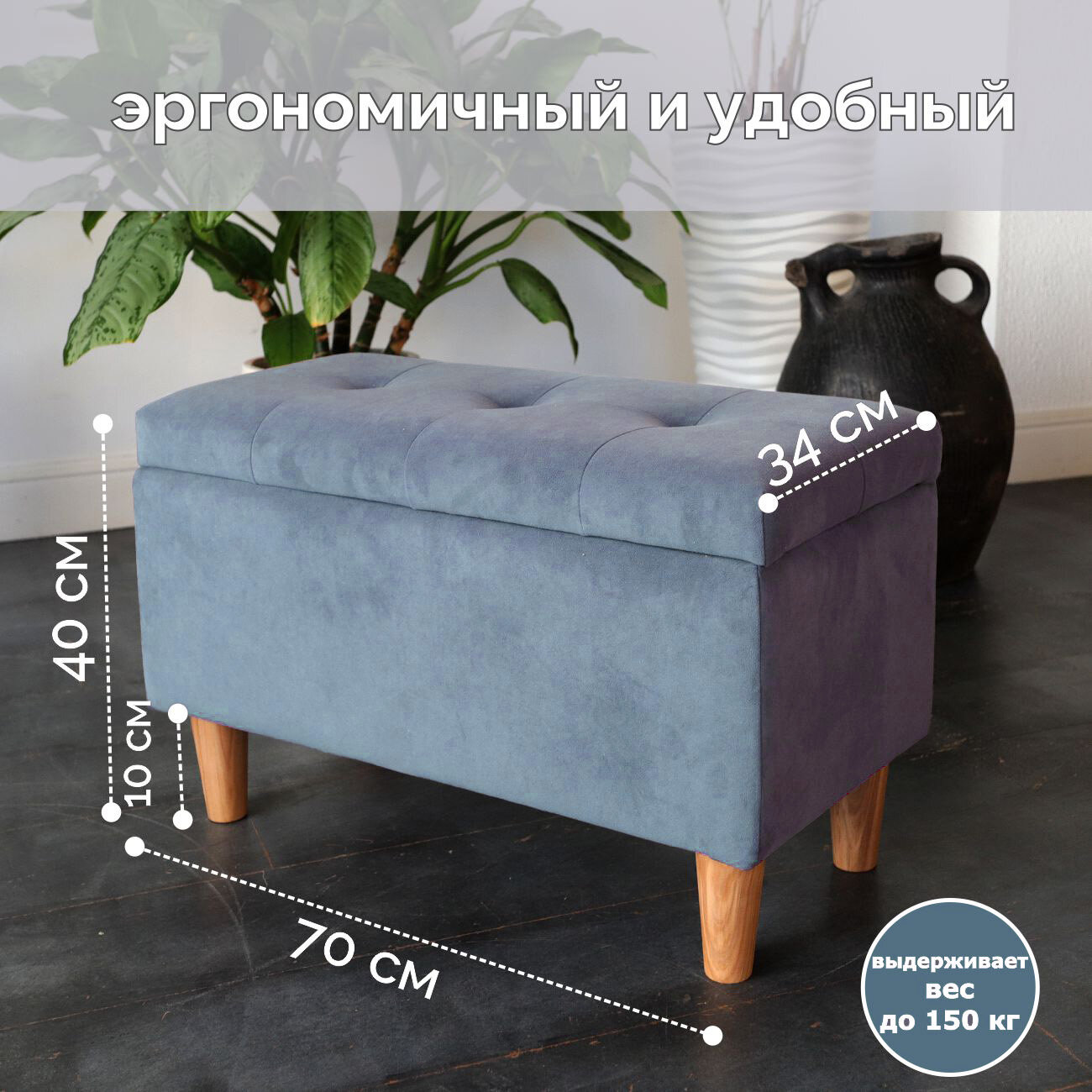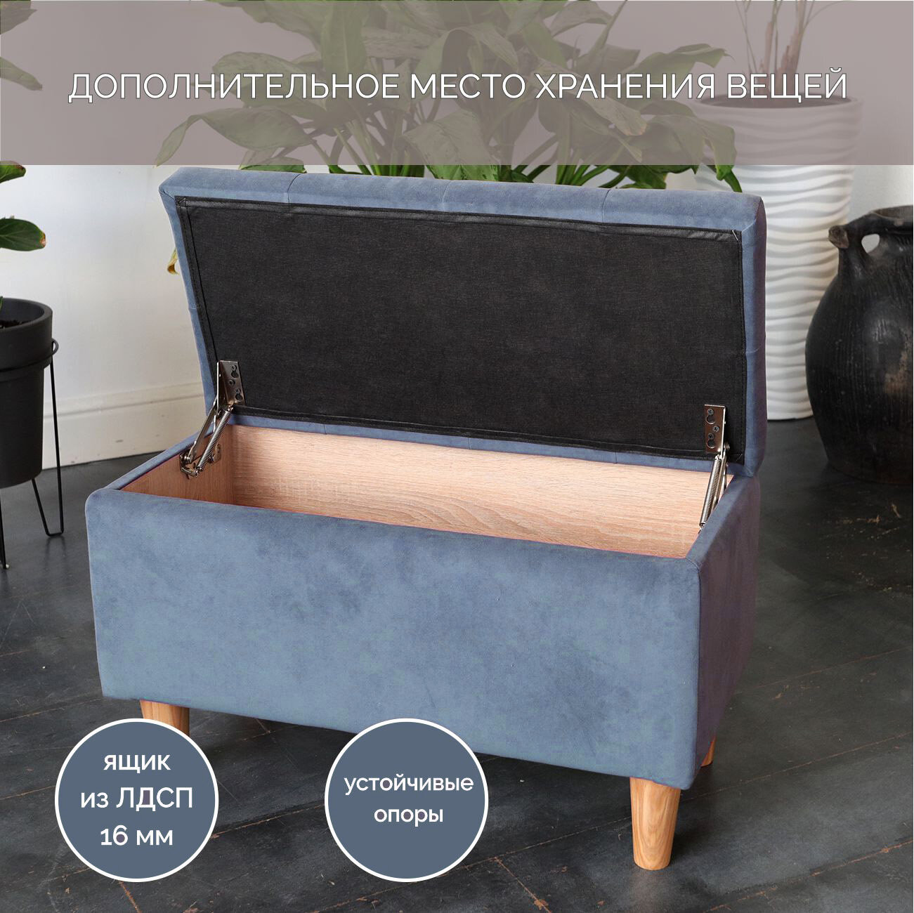 Банкетка с ящиком хранения MisSofa 70 x 40 x 34, синяя интересное: