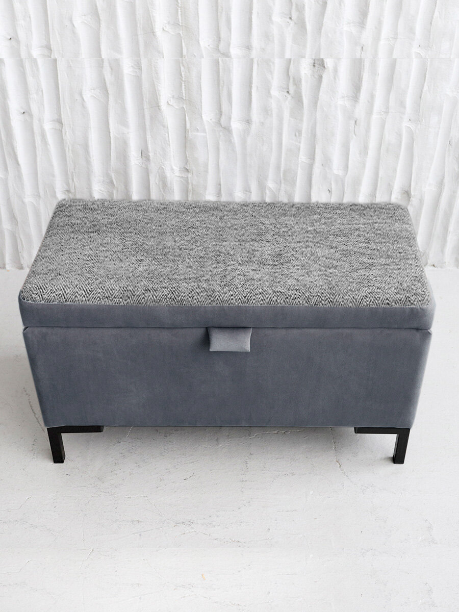 Пуфик, банкетка в прихожую / Подставка для ног; пуф с ящиком для хранения для спальни, для детской, для балкона, для кухни, графит опоры металл, 700х400х340