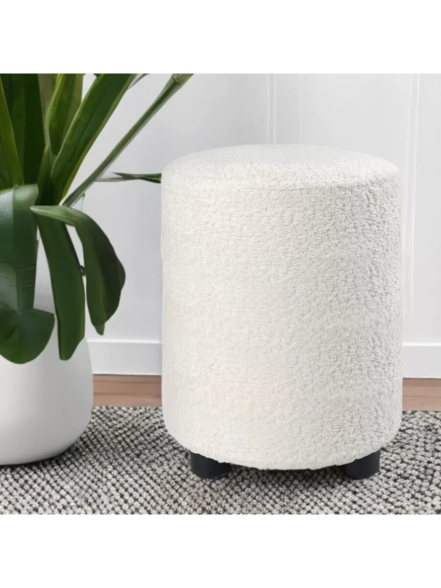 Купить Пуфик круглый белый из букле для туалетного столика, спальни, прихожей или гостиной