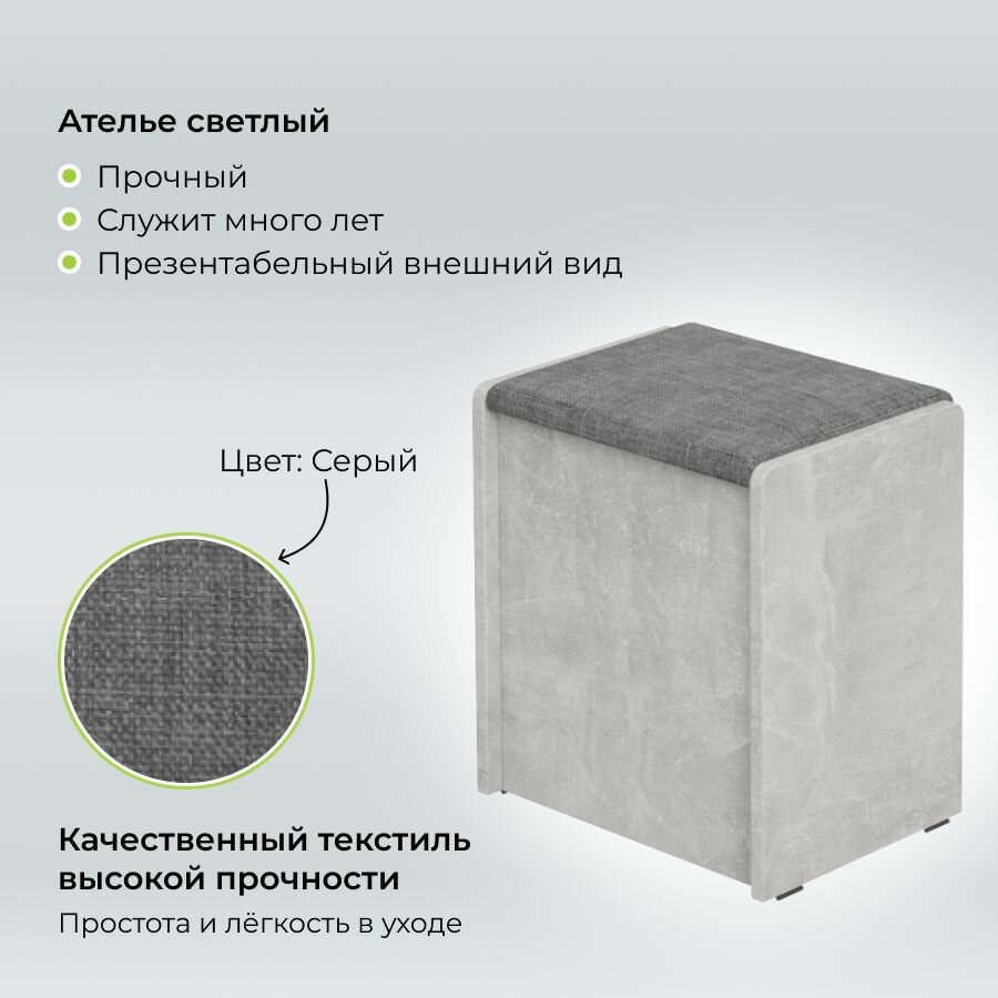 Пуф BONMEBEL Чикаго Тип 1, Ателье светлый/Рогожка Серый, банкетка в прихожую с ящиков интересное: