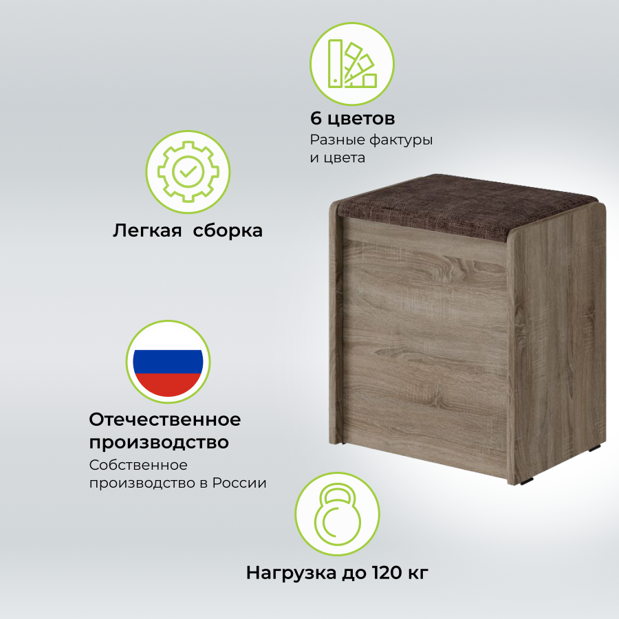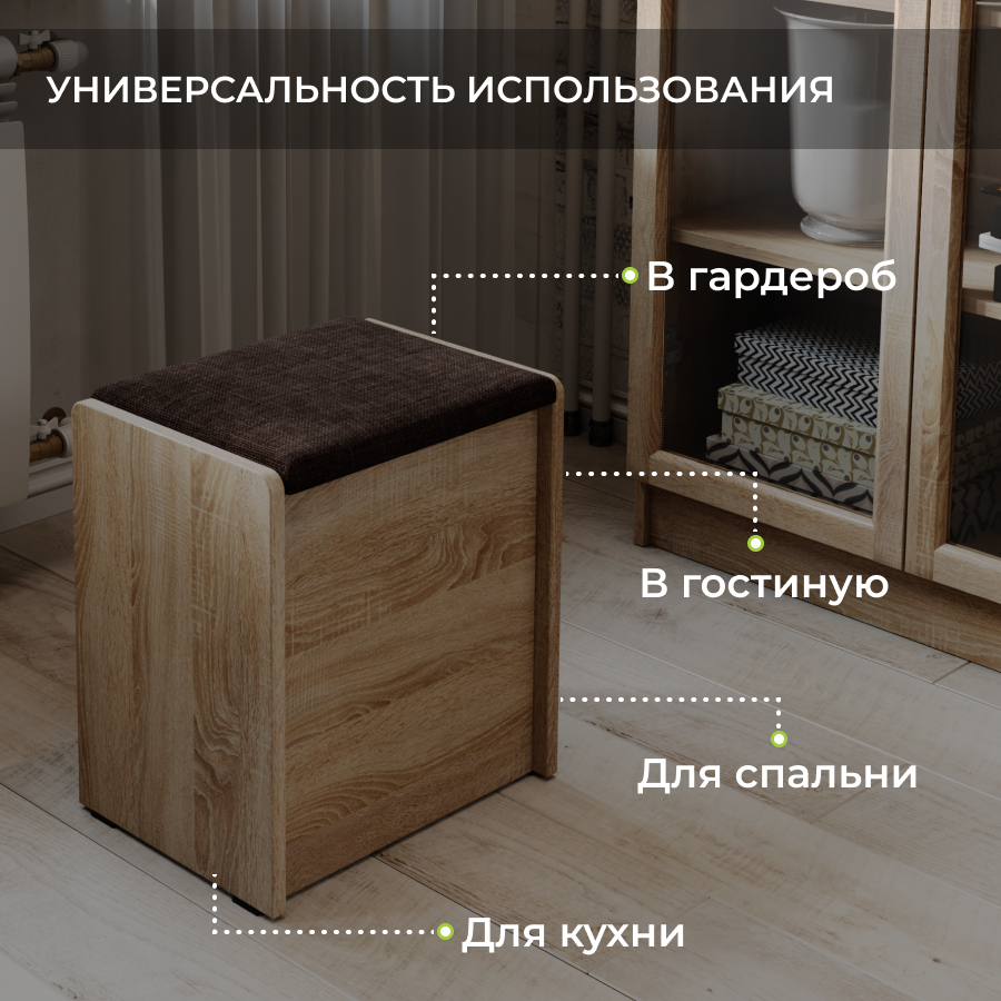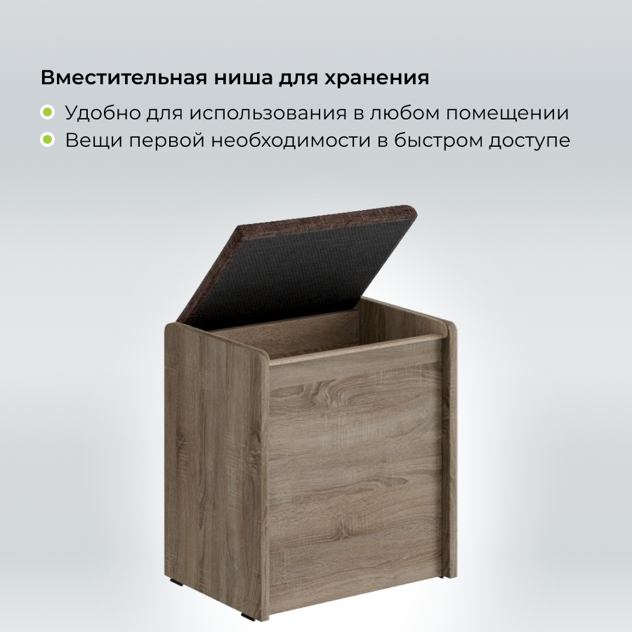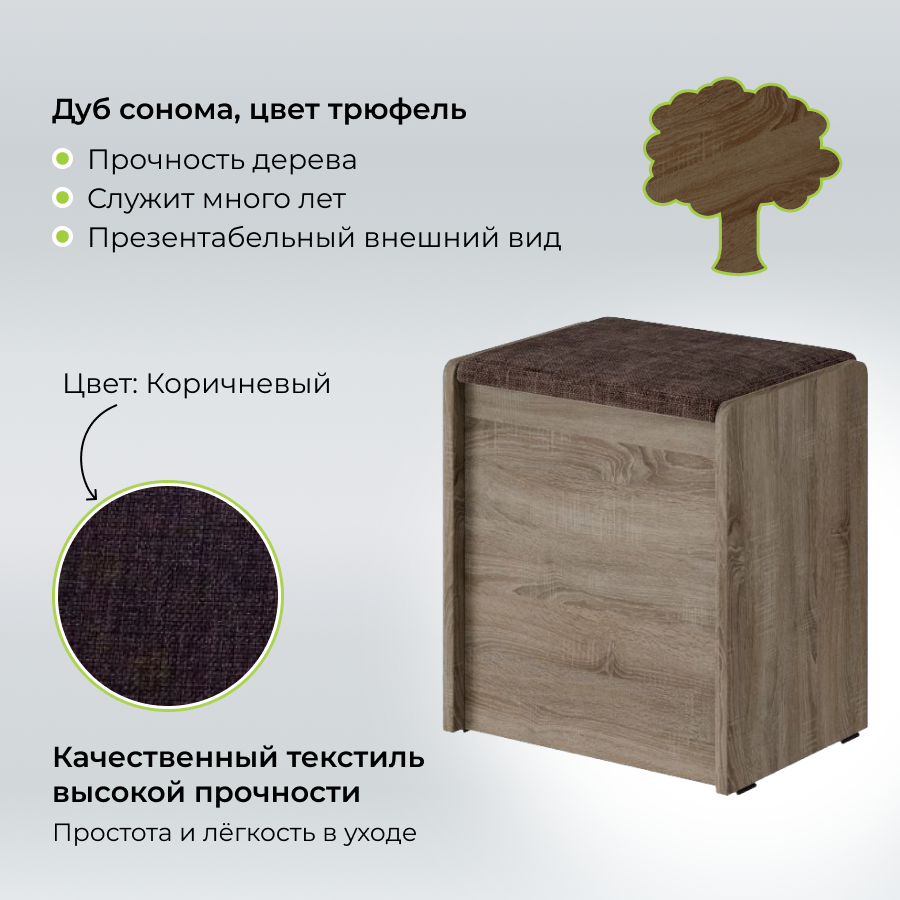 Пуф Чикаго Тип 1, Дуб сонома трюфель/Коричневый, табурет для кухни, банкетка в прихожую, мебель для кухни, с ящиком для хранения