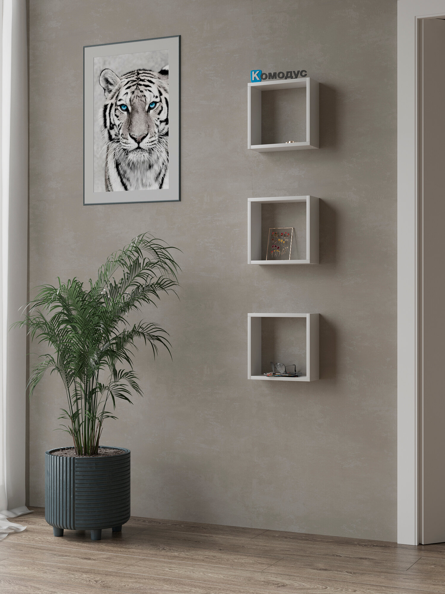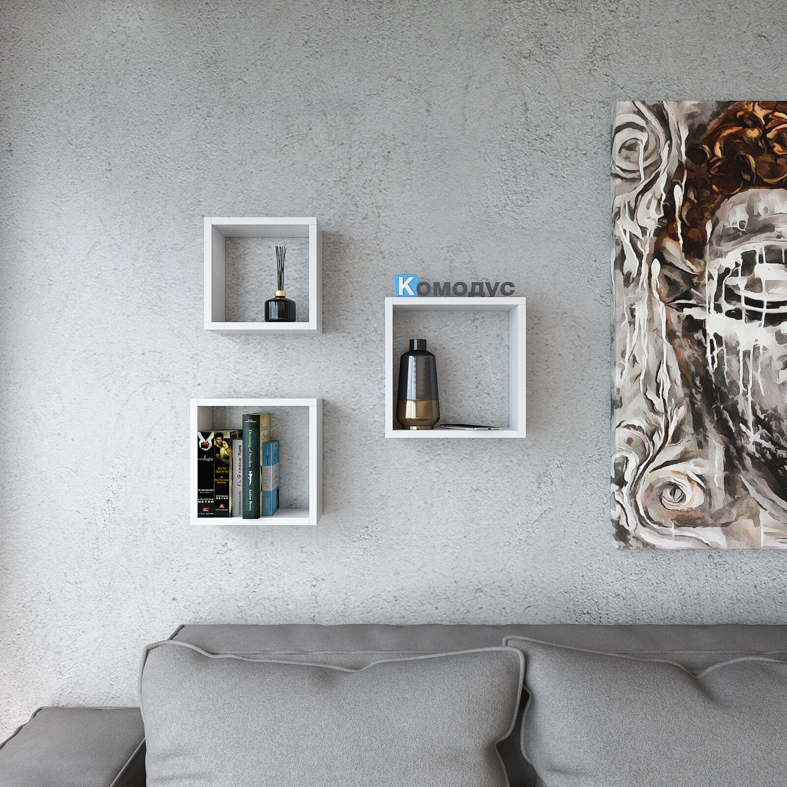 Полка настенная Кубик, (набор 30/27/24 см) белый, 3 шт. интересное: