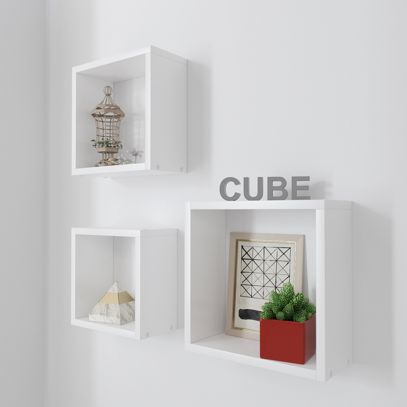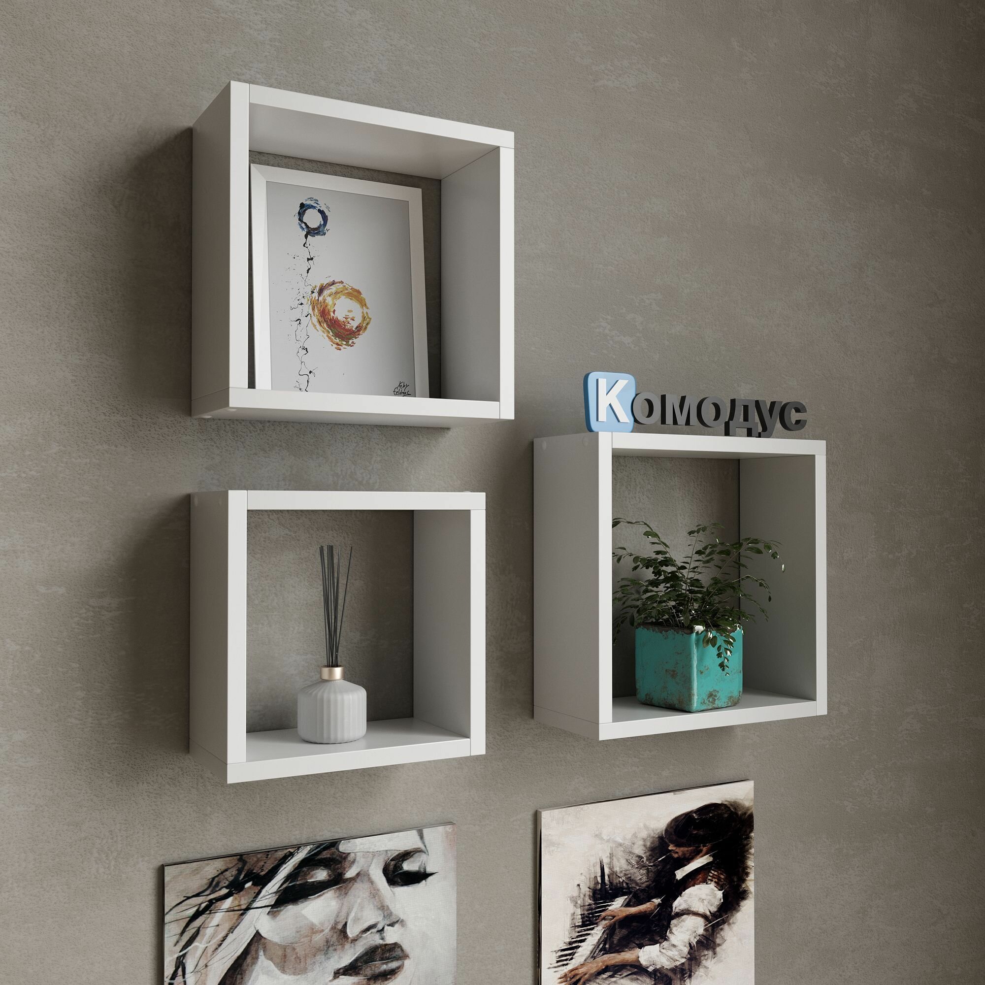 Купить Полка настенная Кубик, (набор 30/27/24 см) белый, 3 шт.