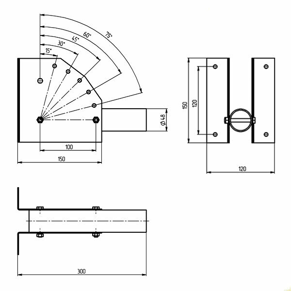 Кронштейн для уличного светильника SPP-AC2-0-300-048 300х150х120 d48мм с перемен. углом Эра Б0047651