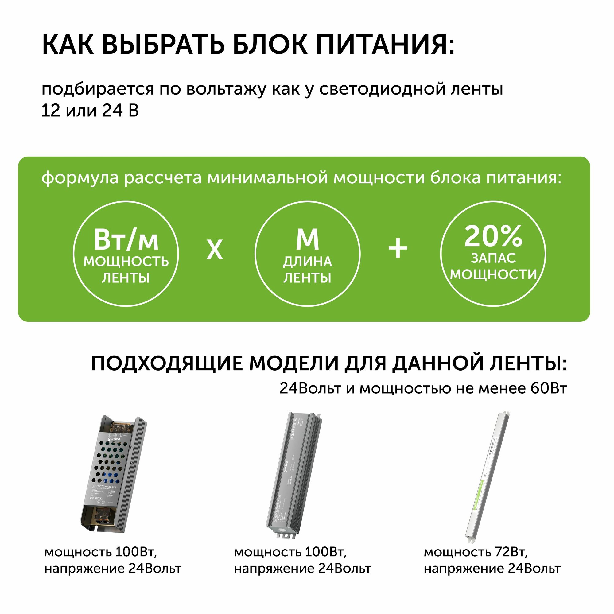 10-21 Комплект светодиодной ленты 12В, 4,8Вт/м, smd3528, 60 д/м, 280 лм/м, IP65, 2,5м, коннектор, БП, т/б