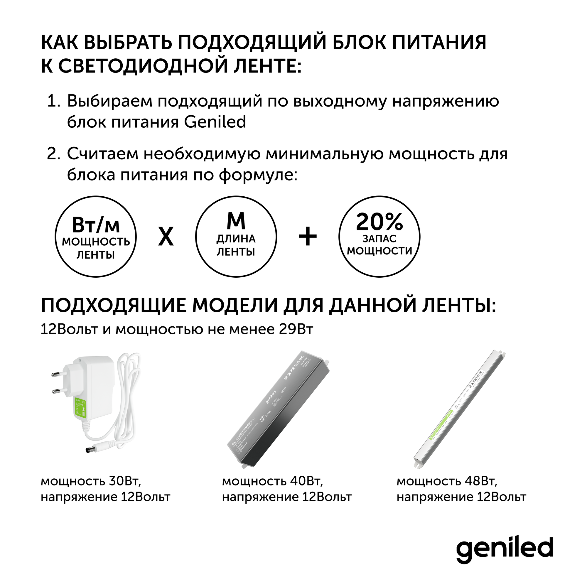 Светодиодная лента Geniled 2м 12В 12Вт/м 4000К IP33 нейтральная дневная подсветка 120 led/m 03581