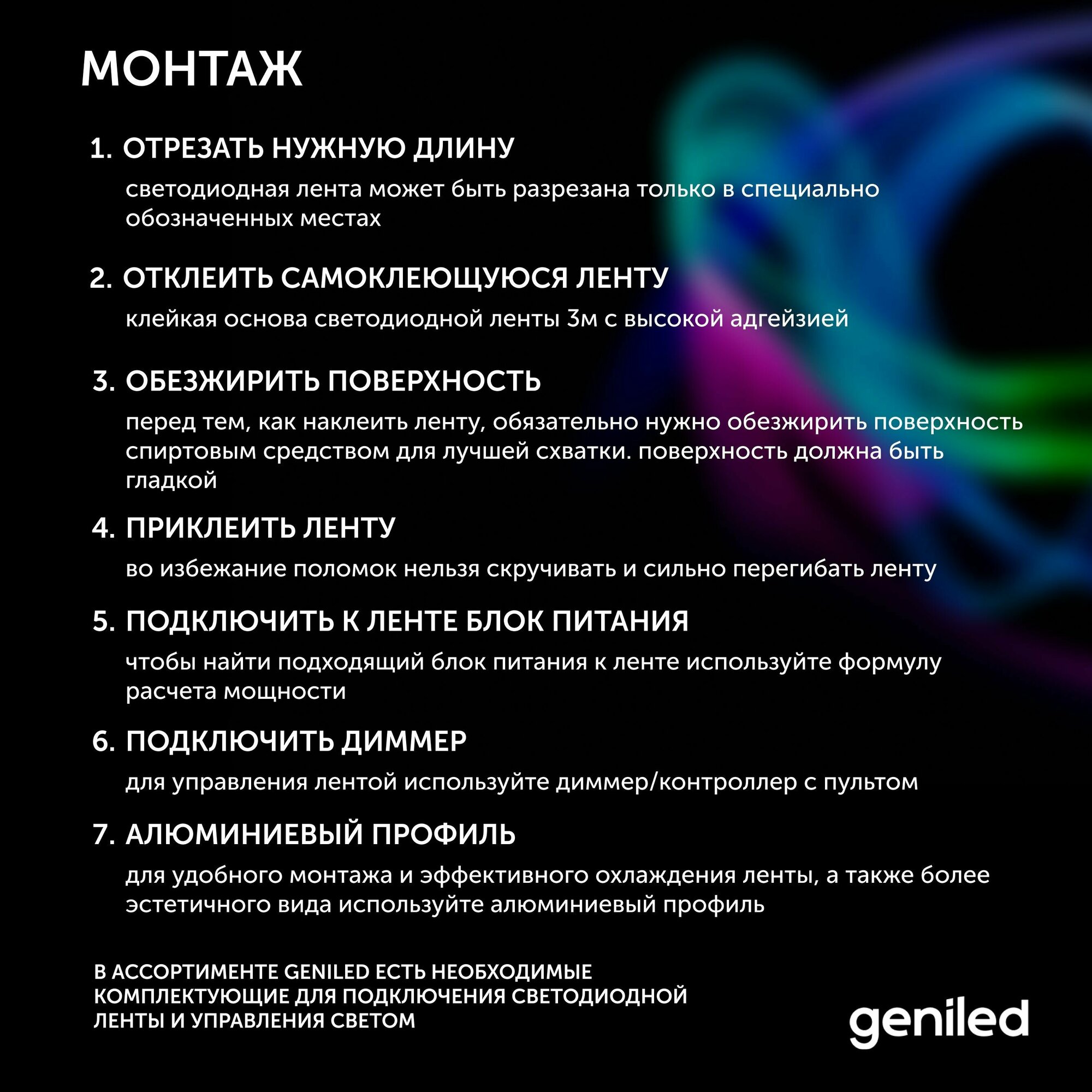 СохранитьСветодиодная лента, подсветка Geniled - для комнаты, в гардероб, на кухню - Теплый белый свет / GL-60SMD2835 / 500 Лм/м / 12В / длина - 2м / B - 8 мм / W - 12Вт / 3000 К / IP65 интересное: