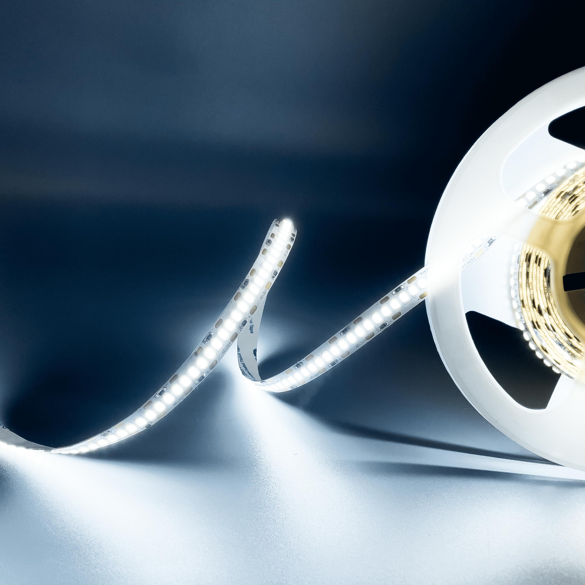 Светодиодная лента, подсветка Geniled - для комнаты, в гардероб, на кухню - Холодный белый свет / GL-240SMD2835 / 2160 Лм/м / 24В / Длина - 5м / B - 10 мм / W - 20 вт / 6500 К / IP33