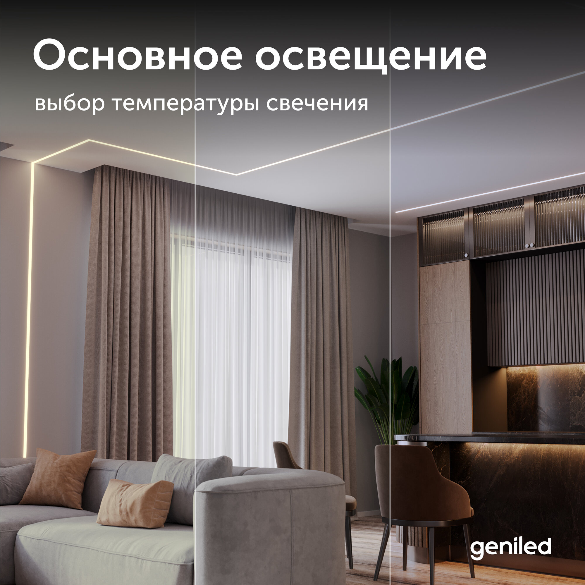 Светодиодная лента, подсветка Geniled - для комнаты, в гардероб, на кухню - Белый Нейтральный свет / GL-180SMD2835 / 1390 Лм/м / 24В / длина - 5м / B - 10 мм / W - 16 вт / 4000 К / IP33