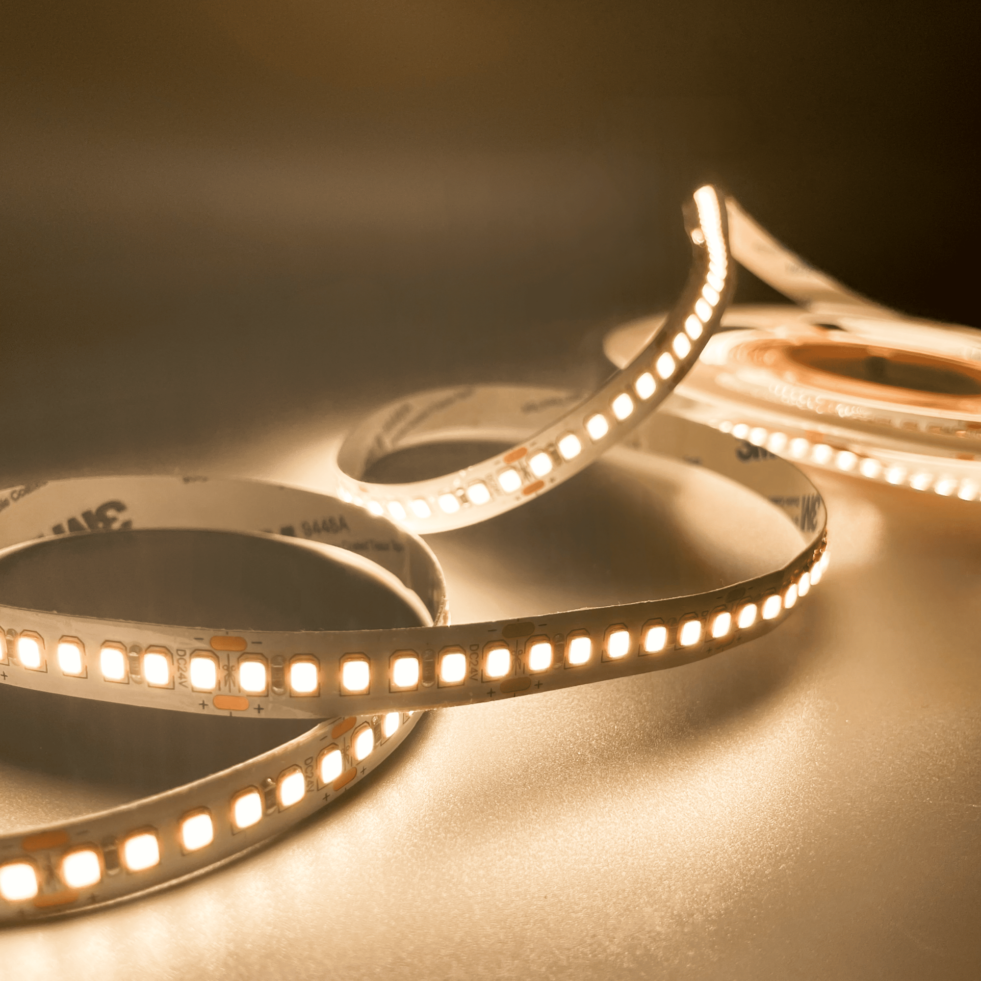 Светодиодная лента, подсветка Geniled - для комнаты, в гардероб, на кухню - Теплый белый свет / GL-240SMD2835 / 1920 Лм/м / 24В / Длина - 5м / B - 10 мм / W - 20 вт / 3000 К / IP33