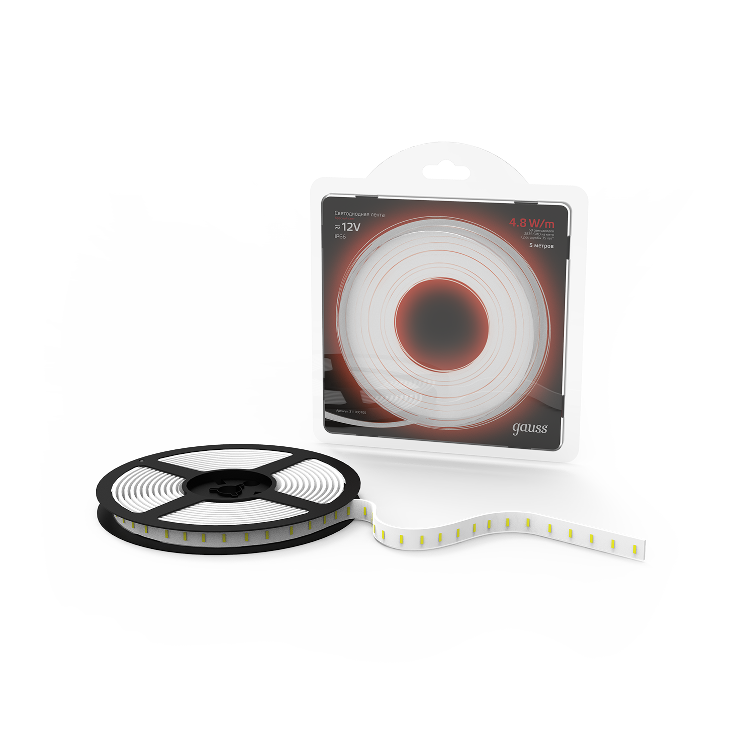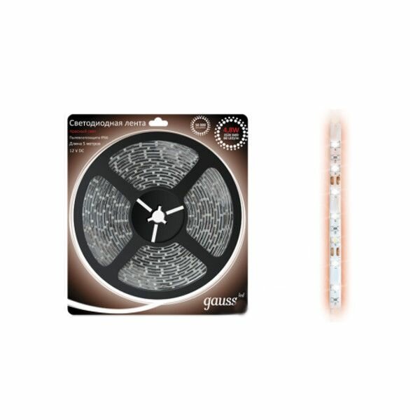 Купить Светодиодная лента Gauss LED 2835/60-SMD 4.8W 12V DC красный IP66 (блистер 5м)