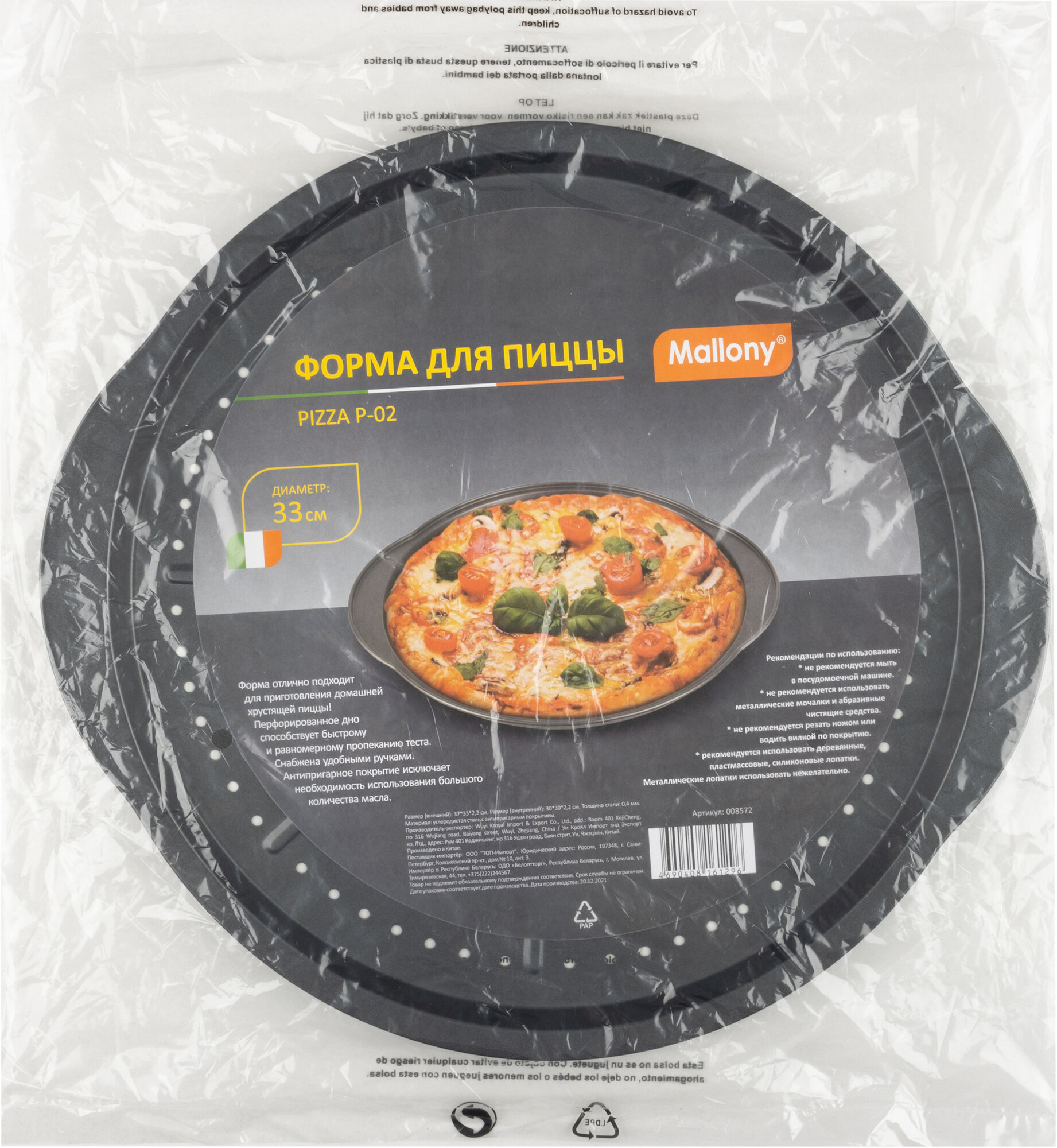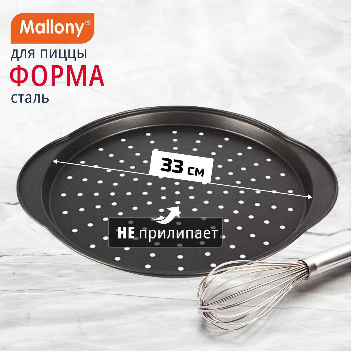 Форма для пиццы с перфорированным дном и ручками Mallony Pizza P-02, диаметр: 33 см