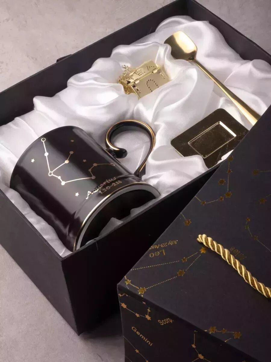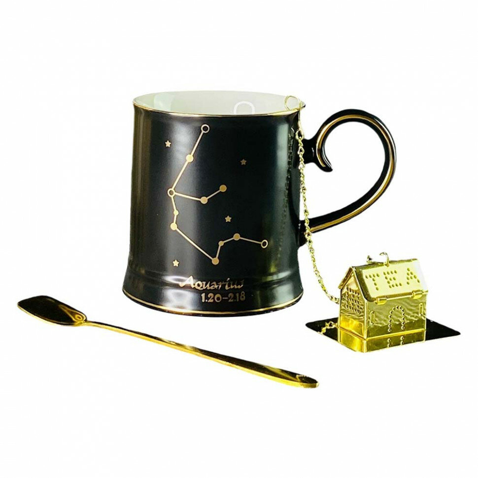 Кружка 360 мл с ложкой и фильтром Lenardi "Водолей" (подарочная упаковка) / 357828