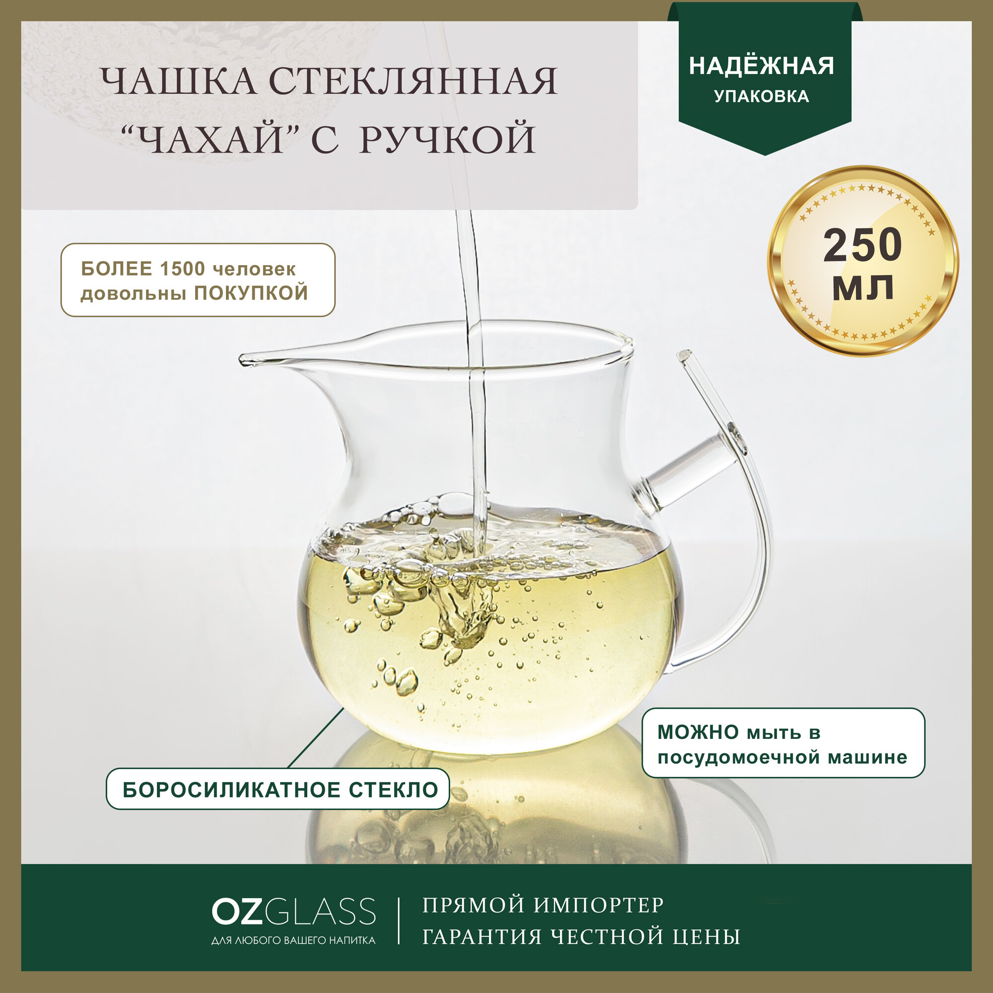 Купить Чашка OZGLASS Чахай, термостойкое стекло, подарочная упаковка, 250 мл