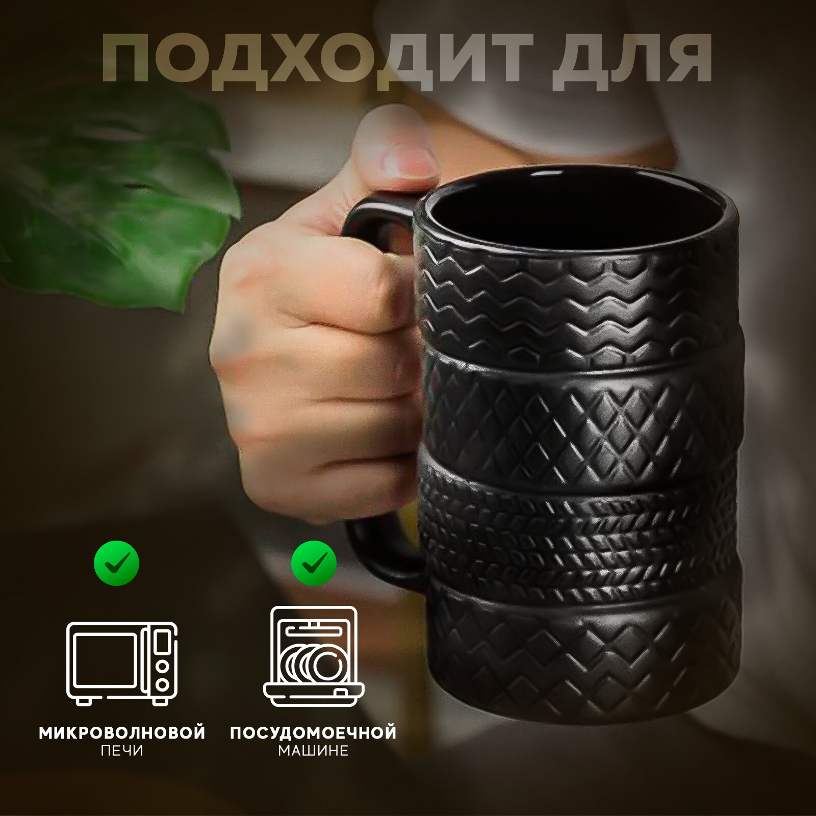 Кружка керамическая "Шины", 460 мл, цвет чёрный