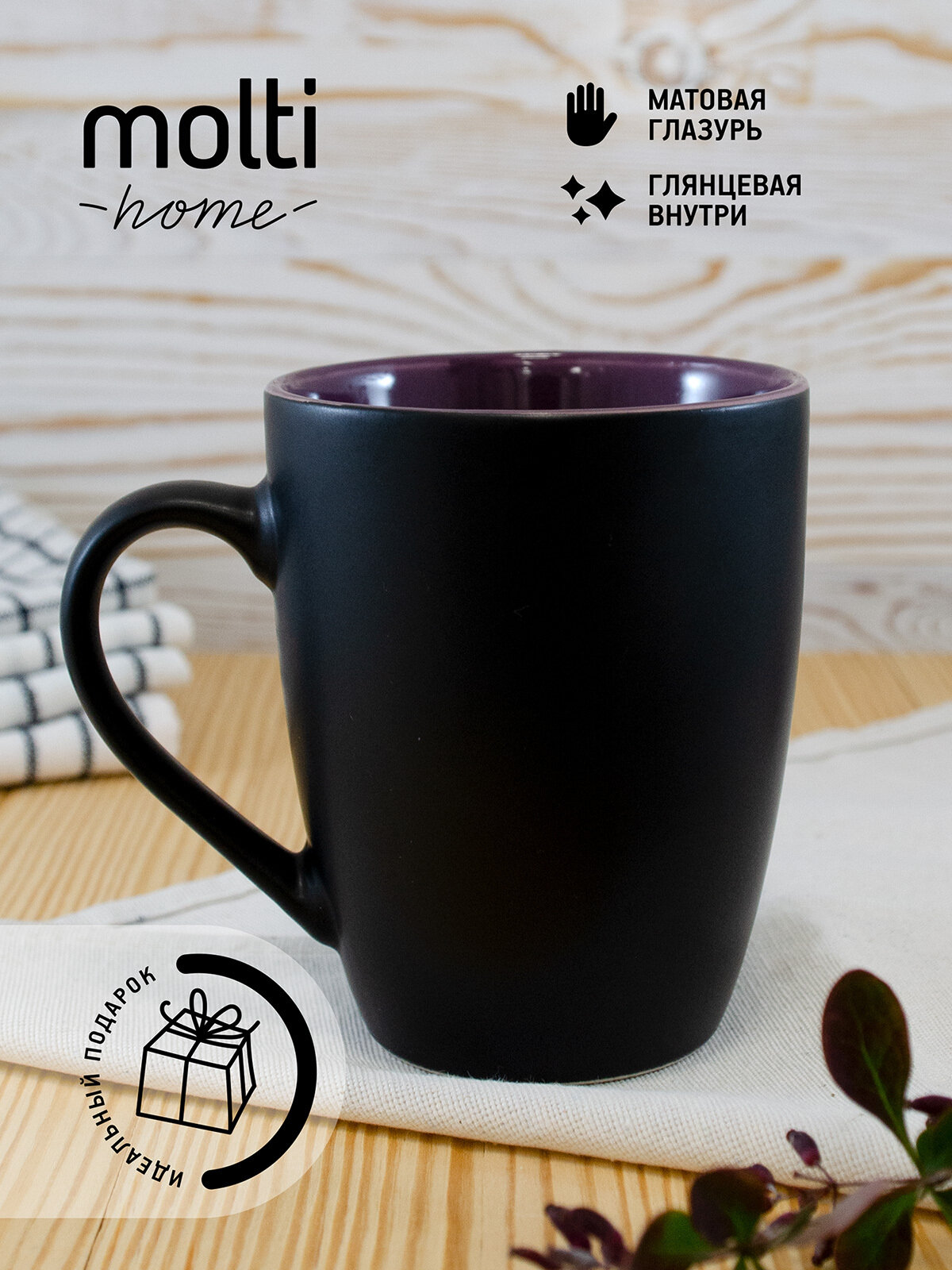 Купить Кружка матовая для чая и кофе molti Bright Tulip двухцветная чашка подарочная 340 мл, черная с фиолетовым