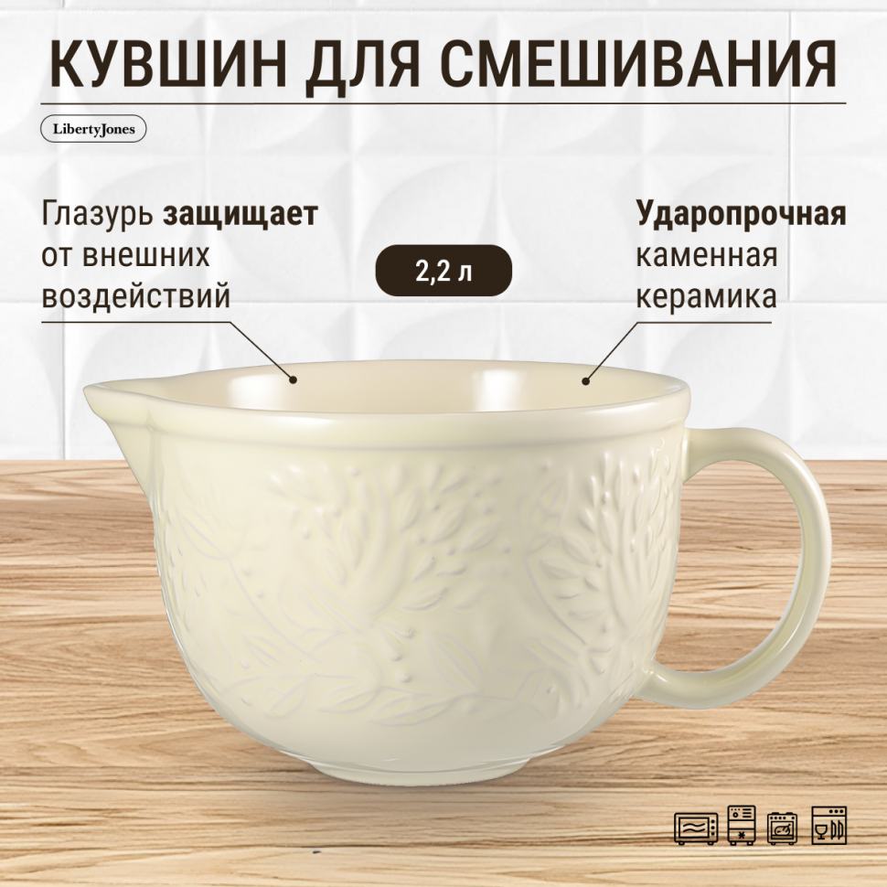 Кувшин для смешивания теста 1,9 л Country Mill светло-бежевый, Liberty Jones, GBP_LJ_BWCM_PRC_BG_25_19