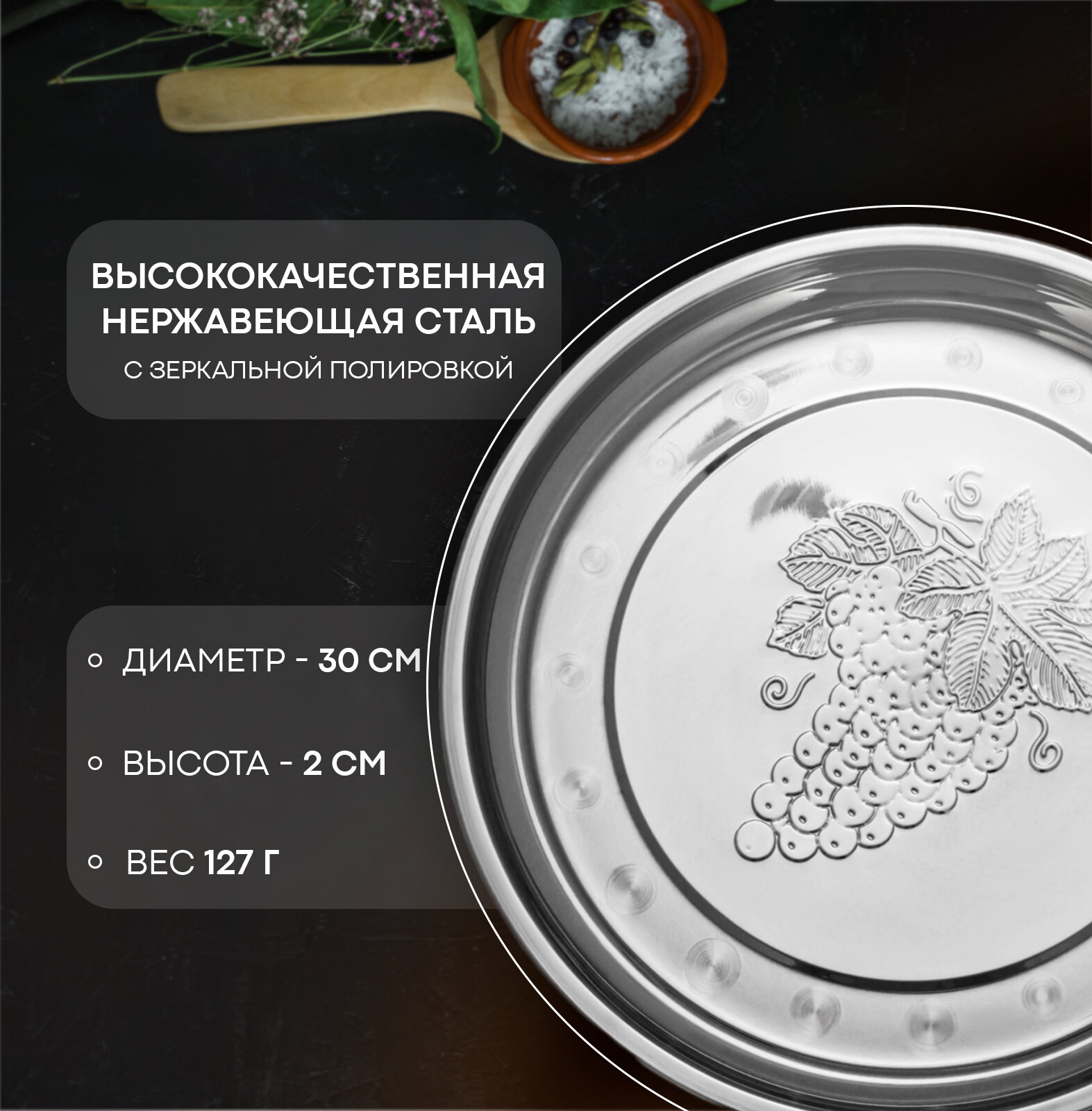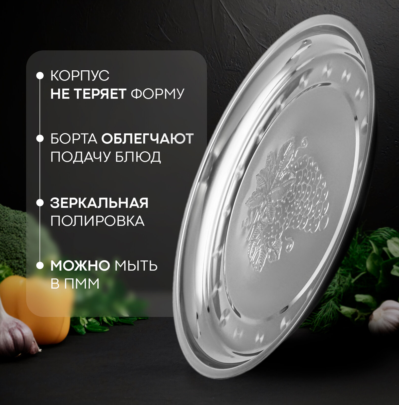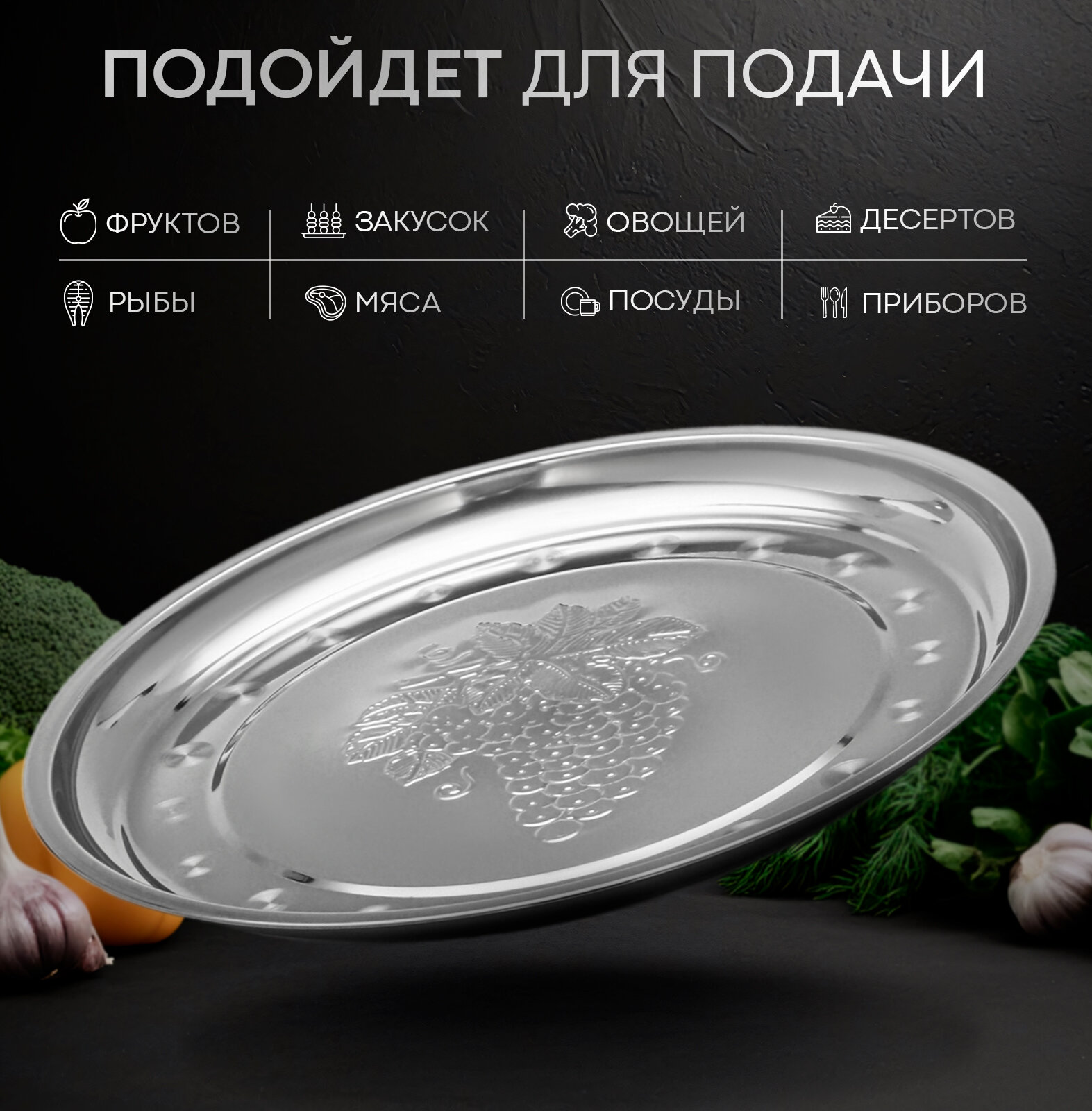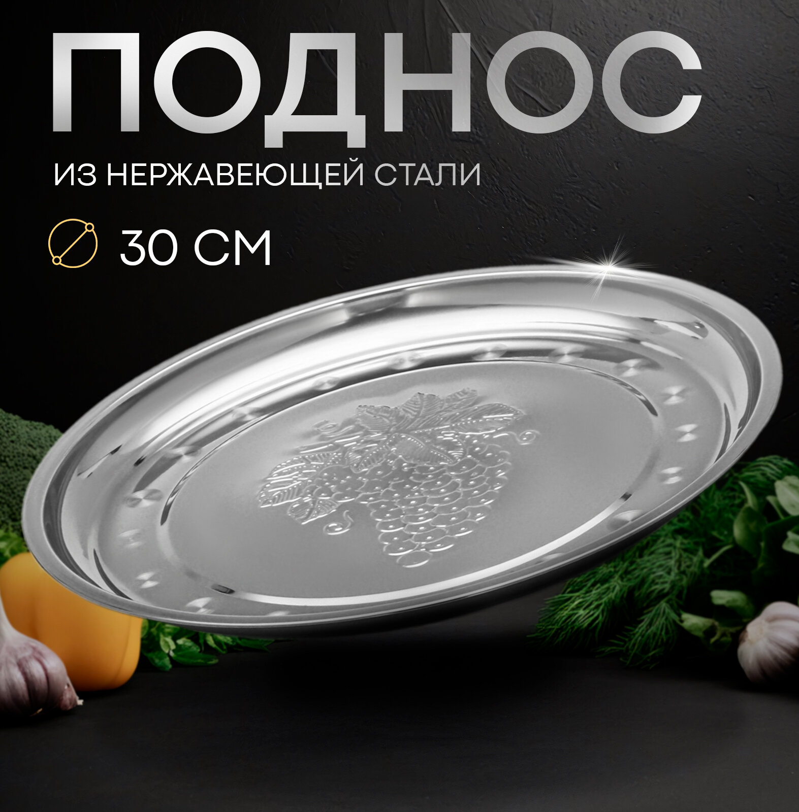 Поднос из нержавеющей стали «Виноградная лоза» 30×2 см интересное: